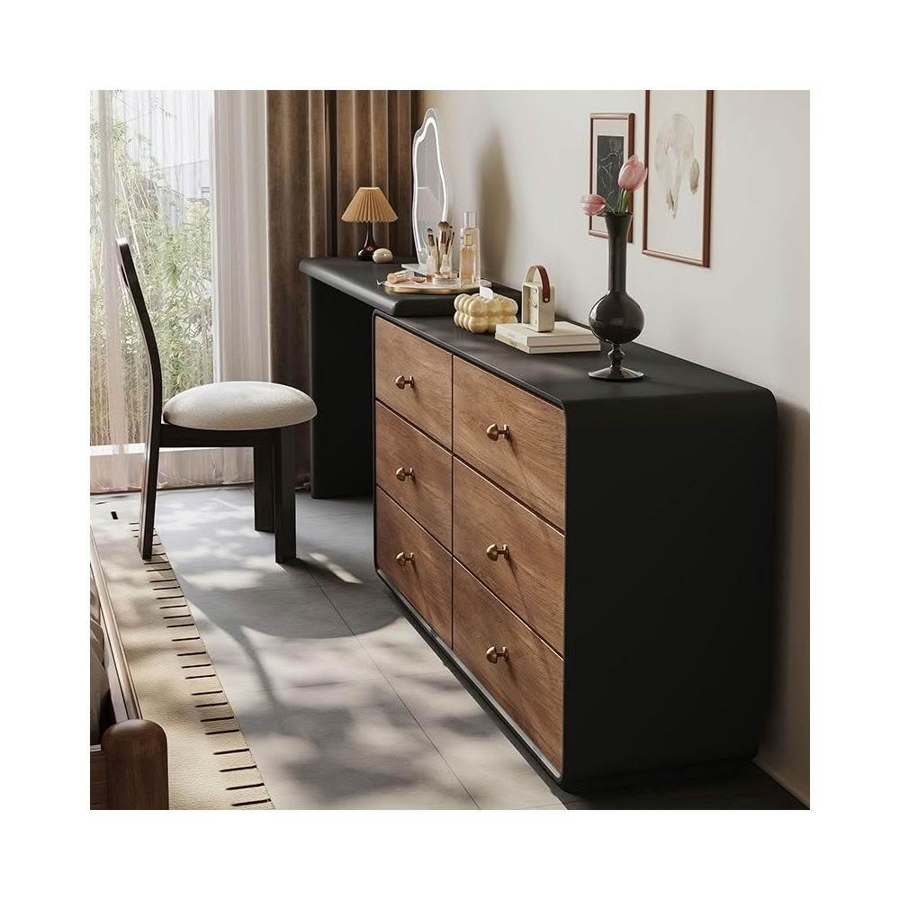 梳粧檯臥室復古風胡桃木收納化妝桌中古風實木梳妝臺鬥櫃一體