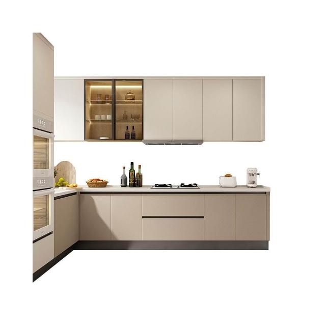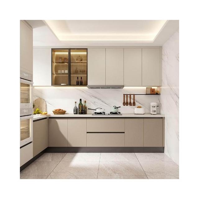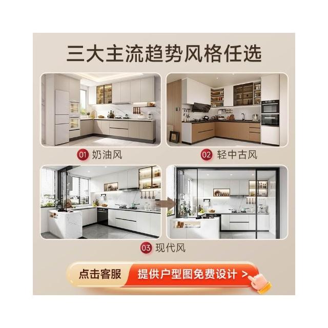 奶油風廚房儲物櫃收納櫃石英石臺面實木灶台可定制顏色尺寸櫥櫃