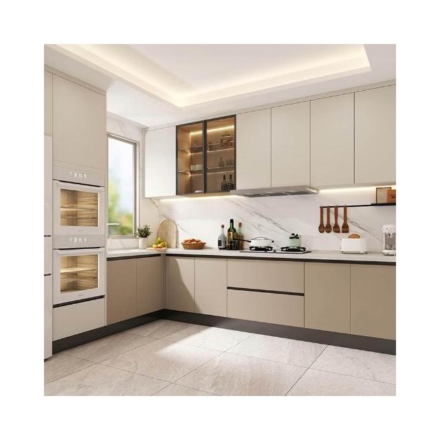 奶油風廚房儲物櫃收納櫃石英石臺面實木灶台可定制顏色尺寸櫥櫃