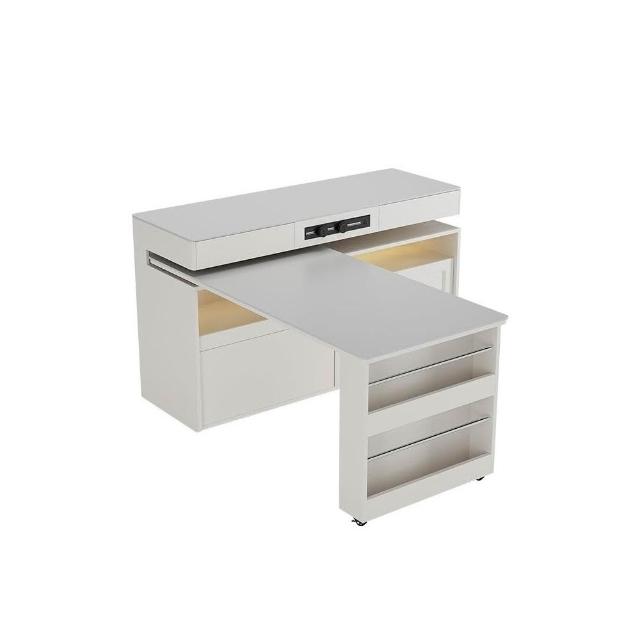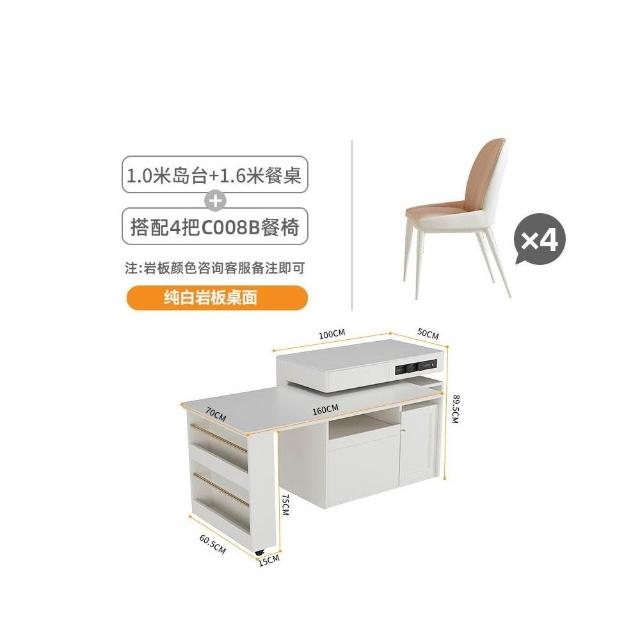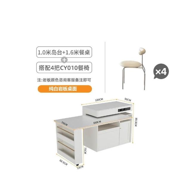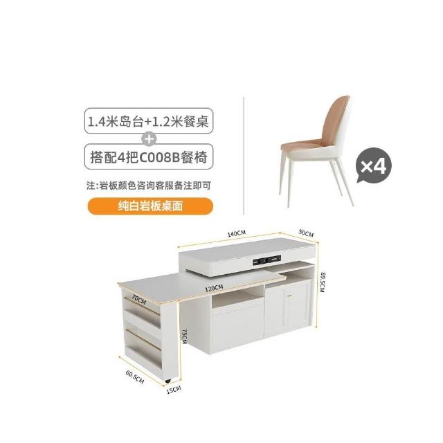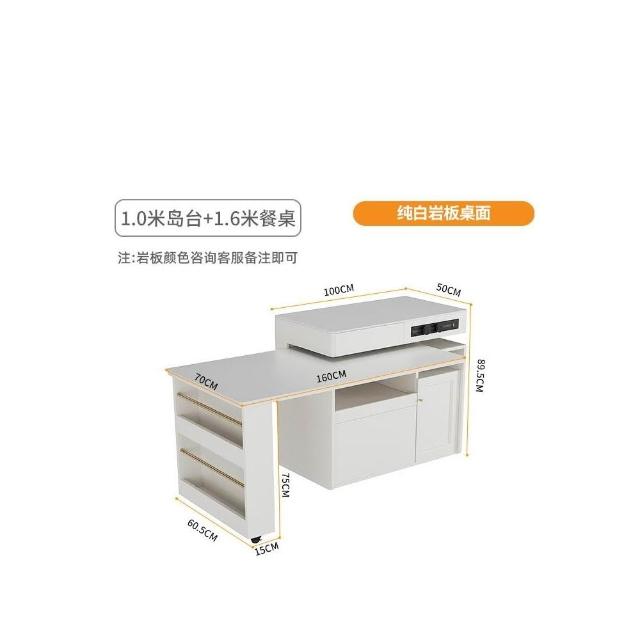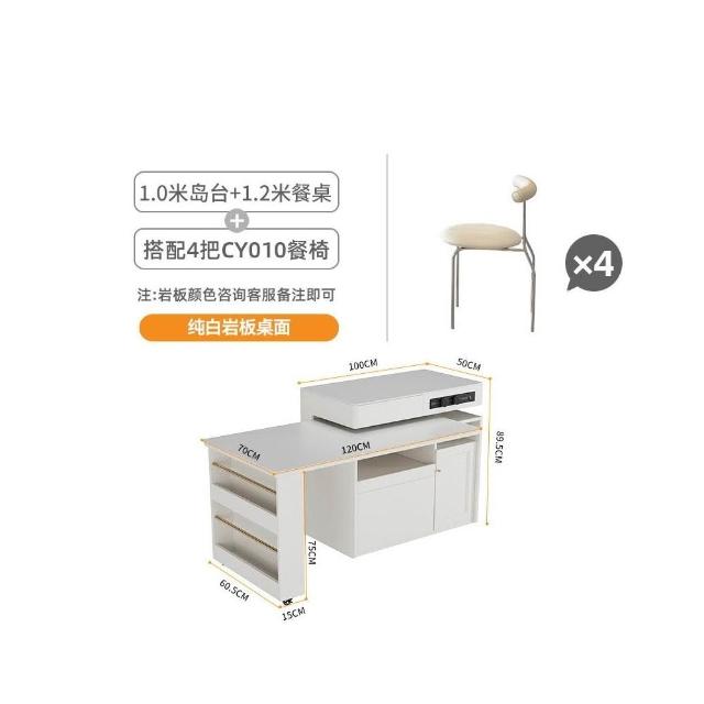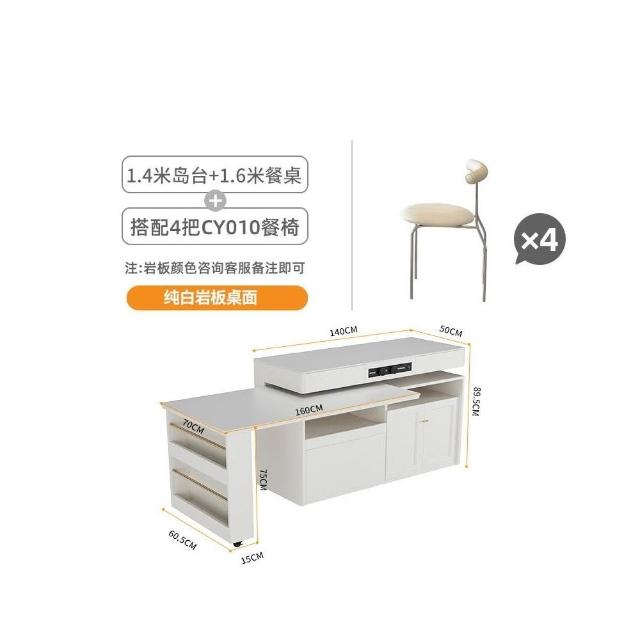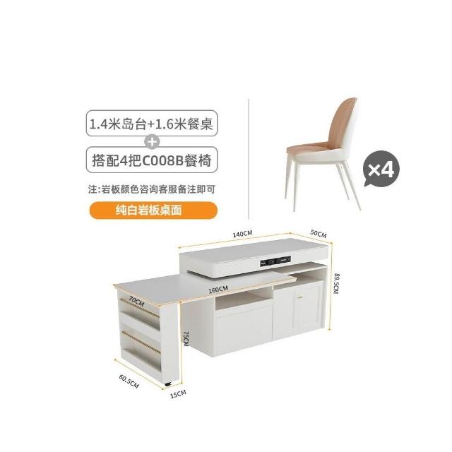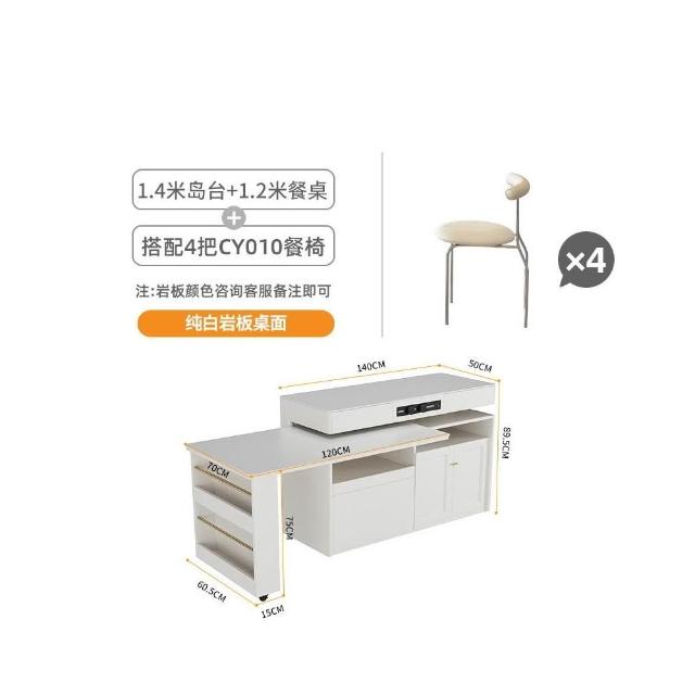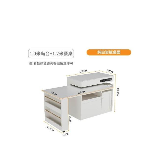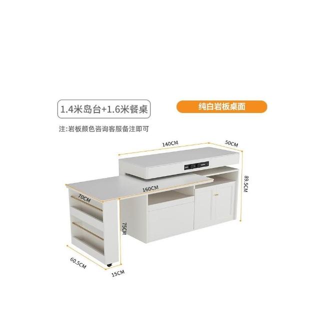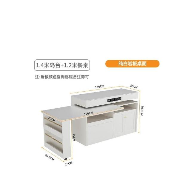多功能吧台桌餐桌一体家用可伸缩奶油风白色岩板实木岛台