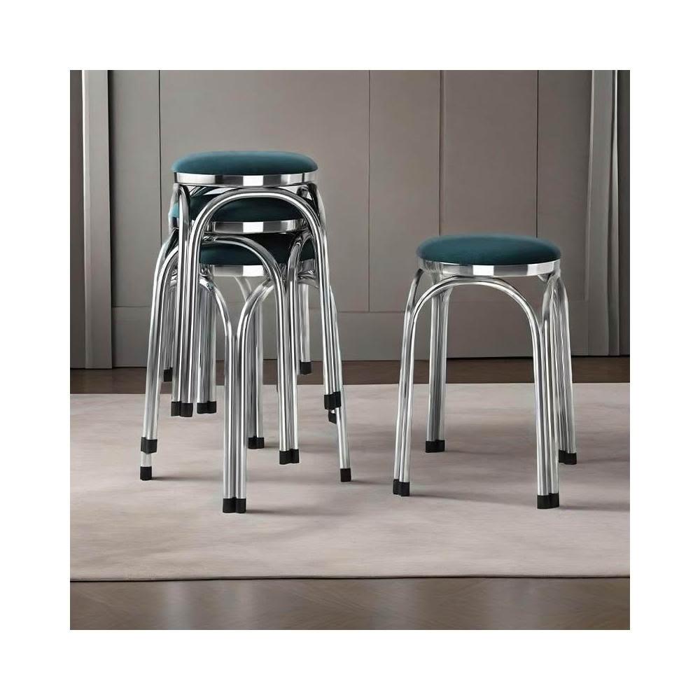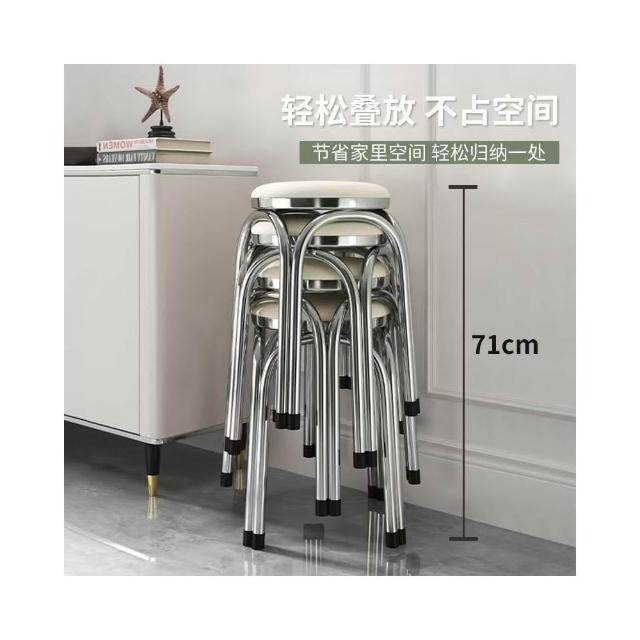 不銹鋼輕奢加厚家用圓凳子簡約現代可疊放餐廳飯店備用凳矮凳板凳