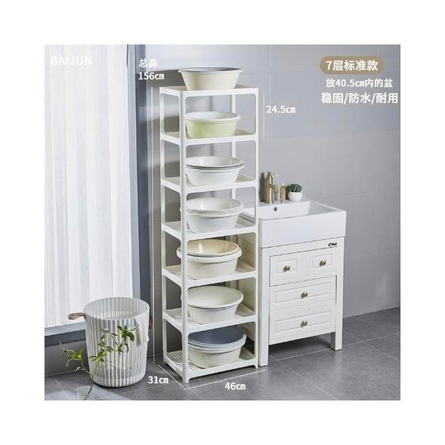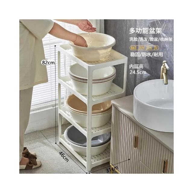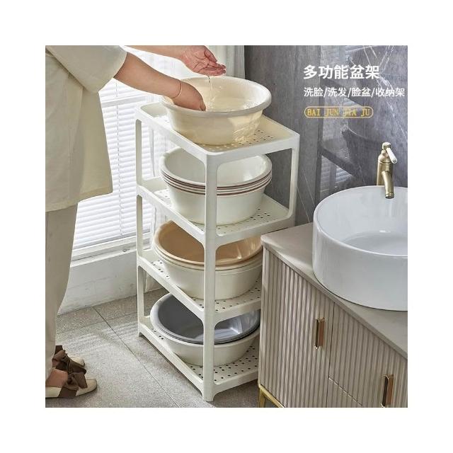 浴室洗臉盆架子衛生間置物架家用放桶盆架多層塑膠加厚落地收贏朔