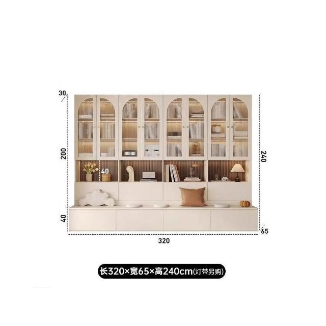 實木卡座書櫃一體靠牆櫃子儲物櫃客廳滿牆書櫥收納櫃簡約展示櫃子