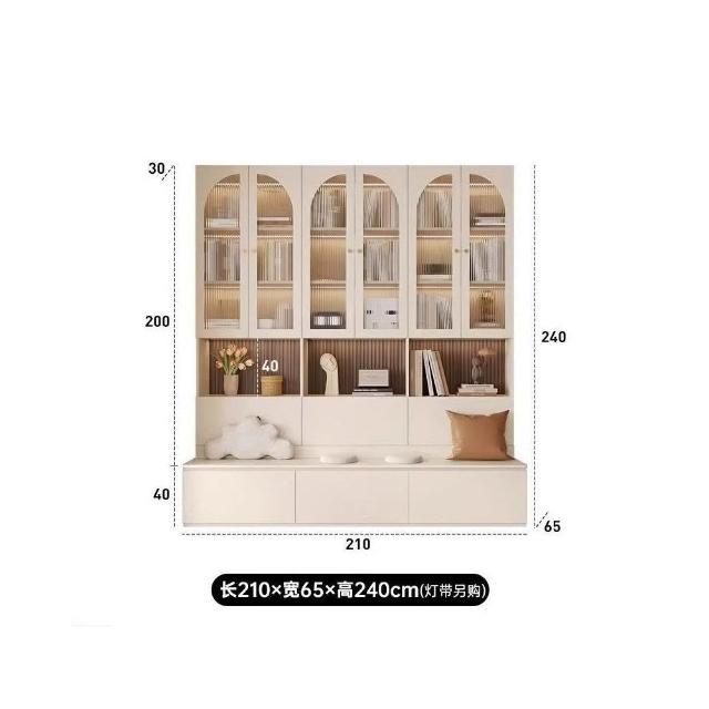 實木卡座書櫃一體靠牆櫃子儲物櫃客廳滿牆書櫥收納櫃簡約展示櫃子