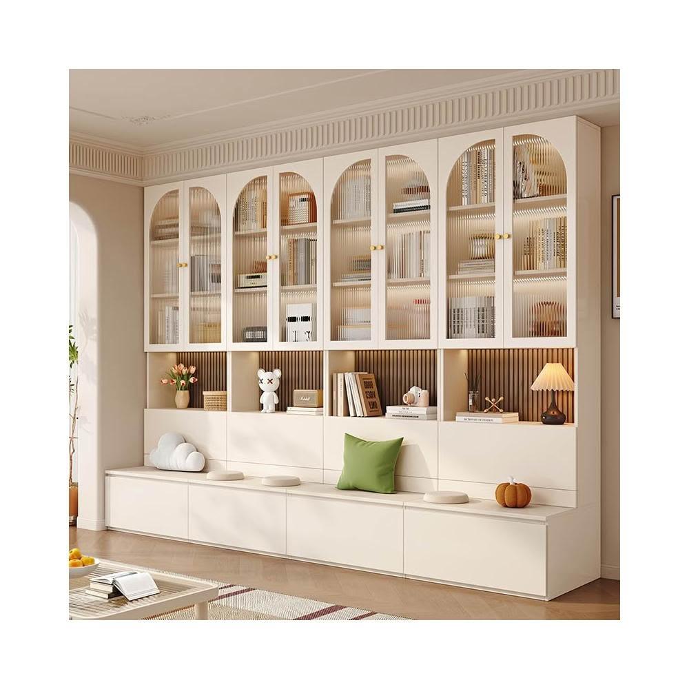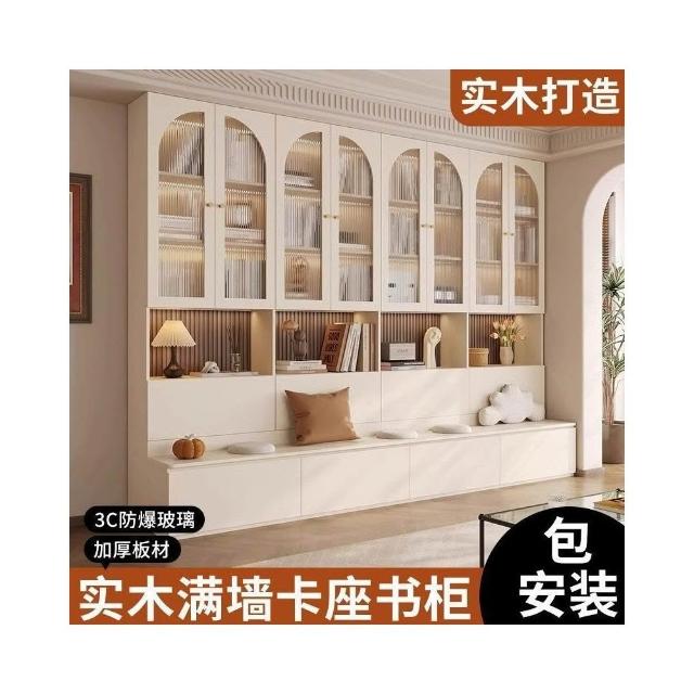 實木卡座書櫃一體靠牆櫃子儲物櫃客廳滿牆書櫥收納櫃簡約展示櫃子