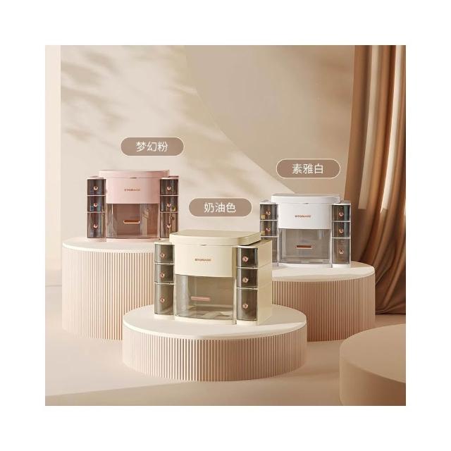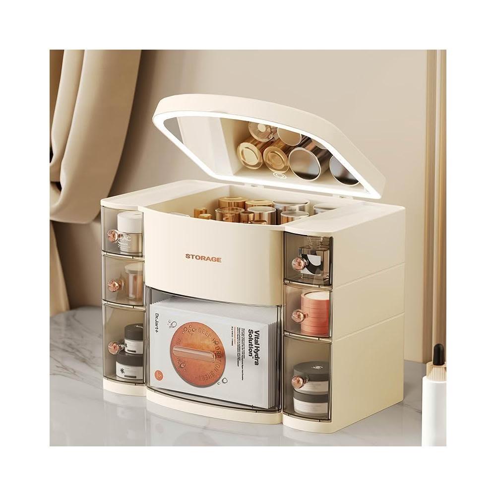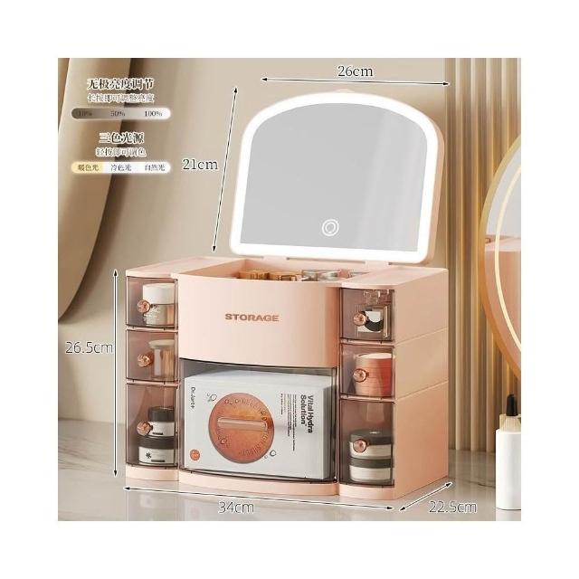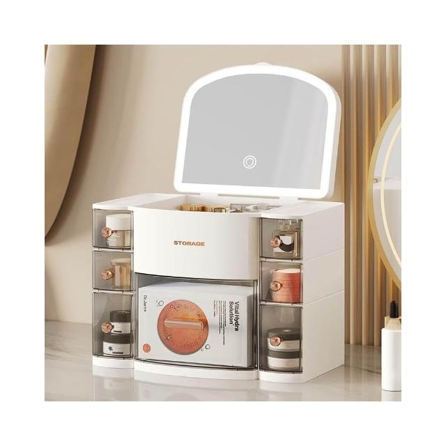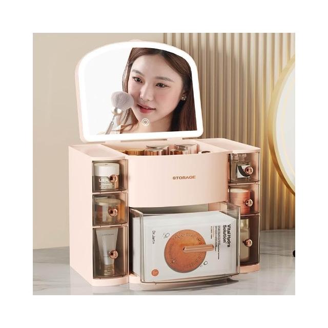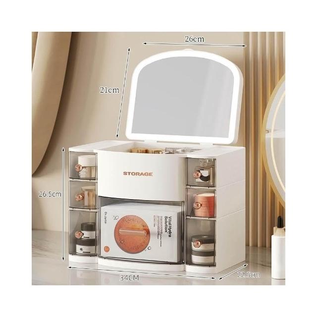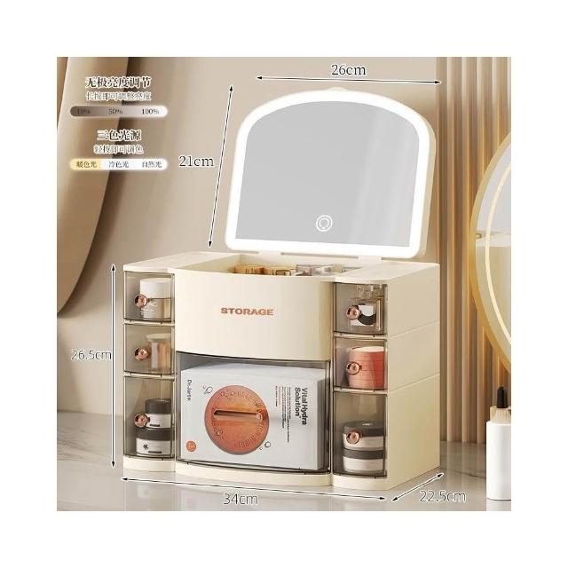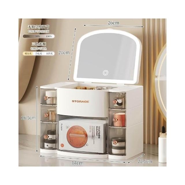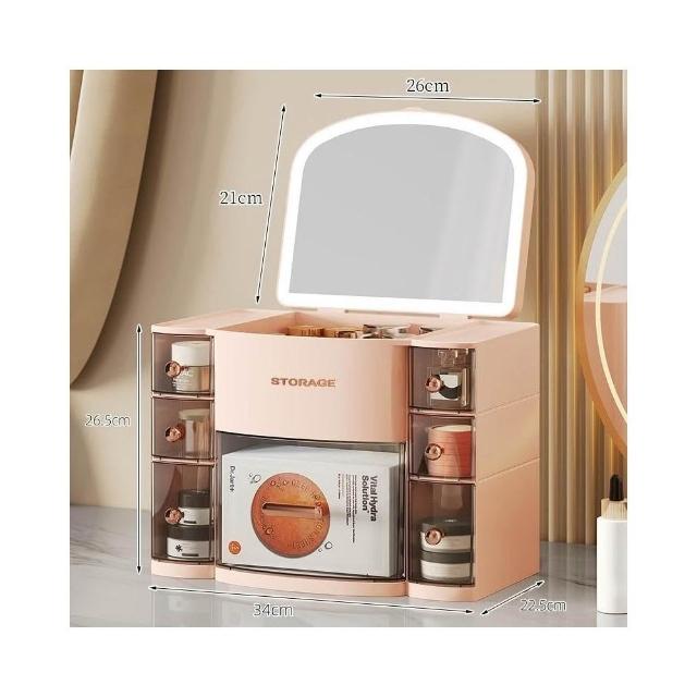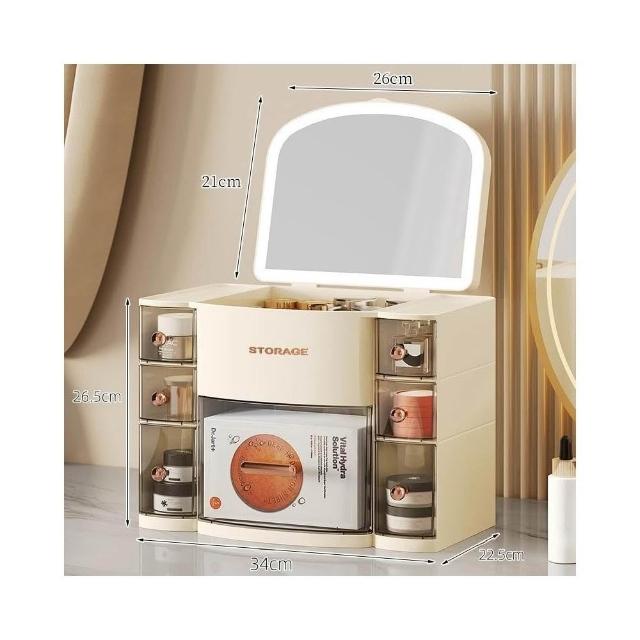 家用帶鏡子化妝品收納盒 帶燈放護膚品化妝箱 桌面抽屜式防塵置物架