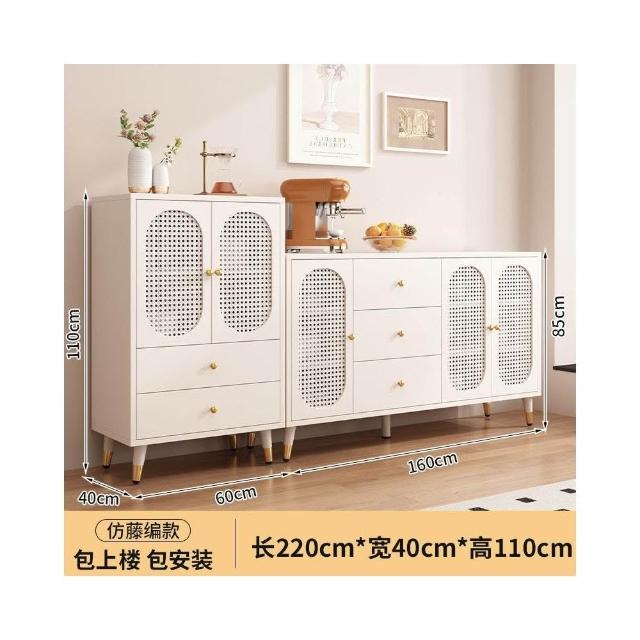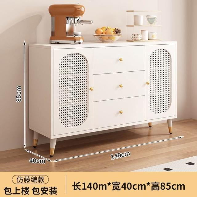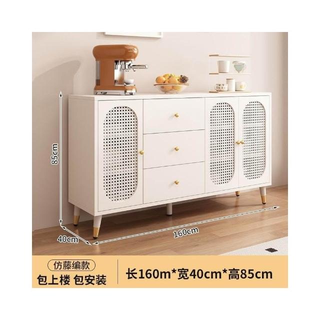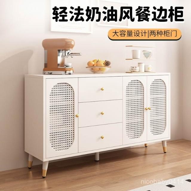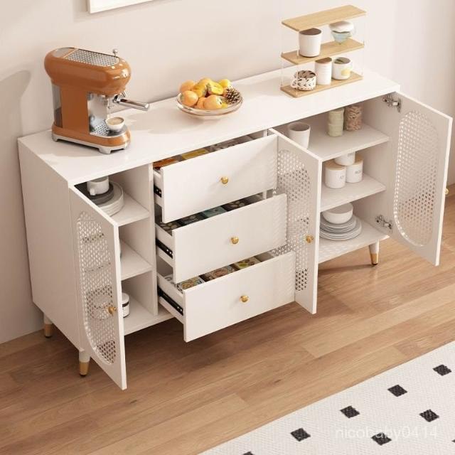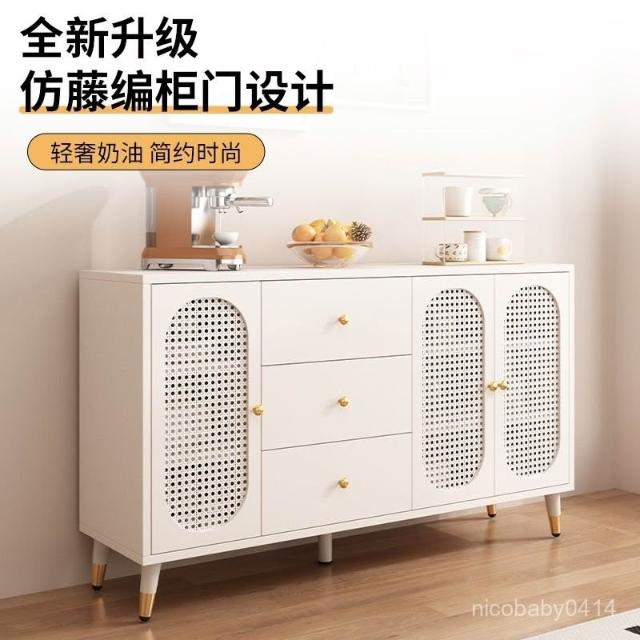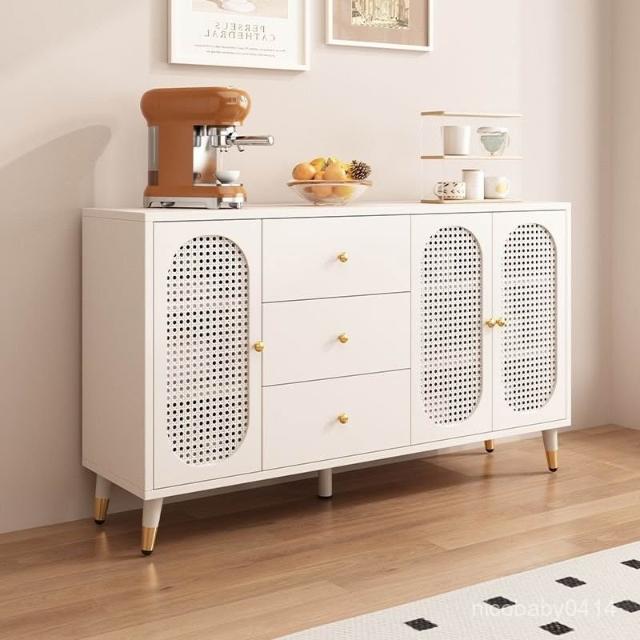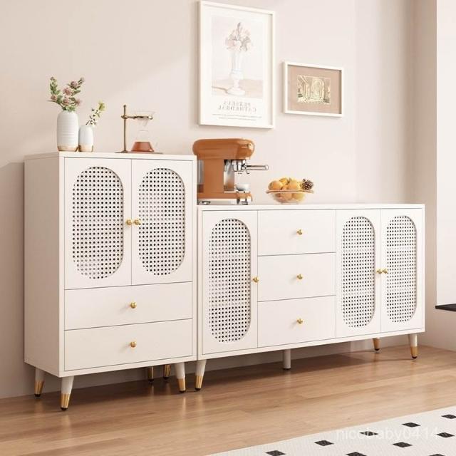 法式奶油風藤編餐邊櫃 一體靠墻家用廚房帶抽儲物櫃 邊櫃 碗櫃 玄關櫃
