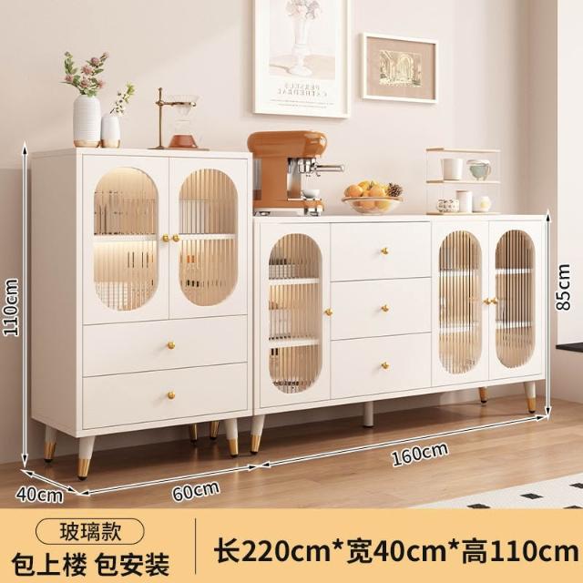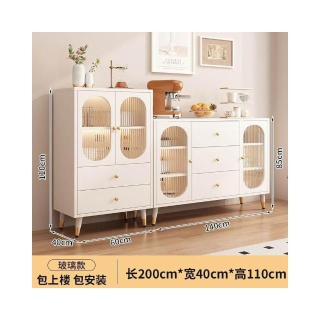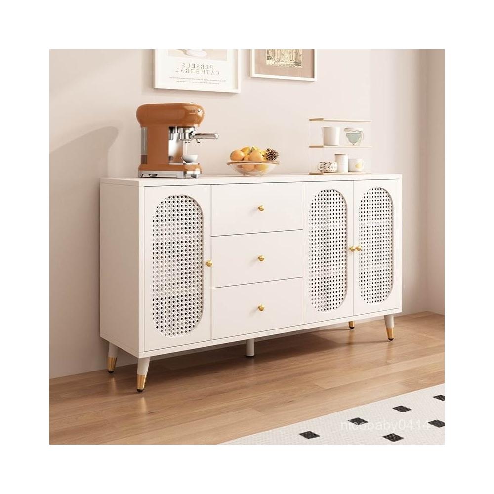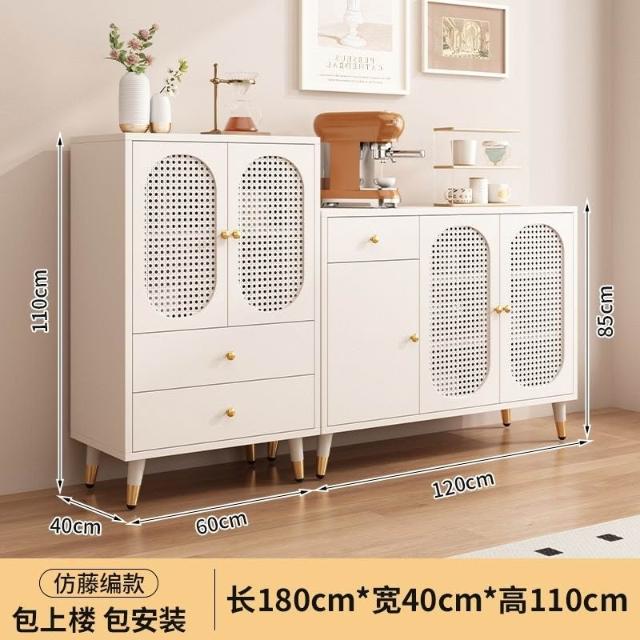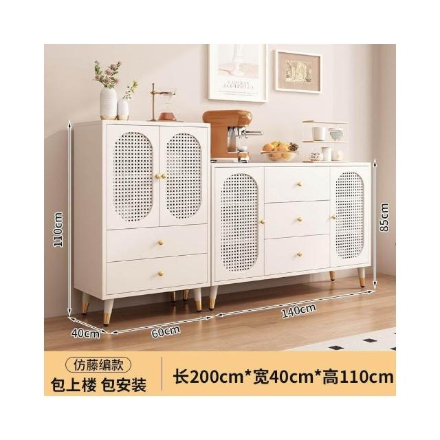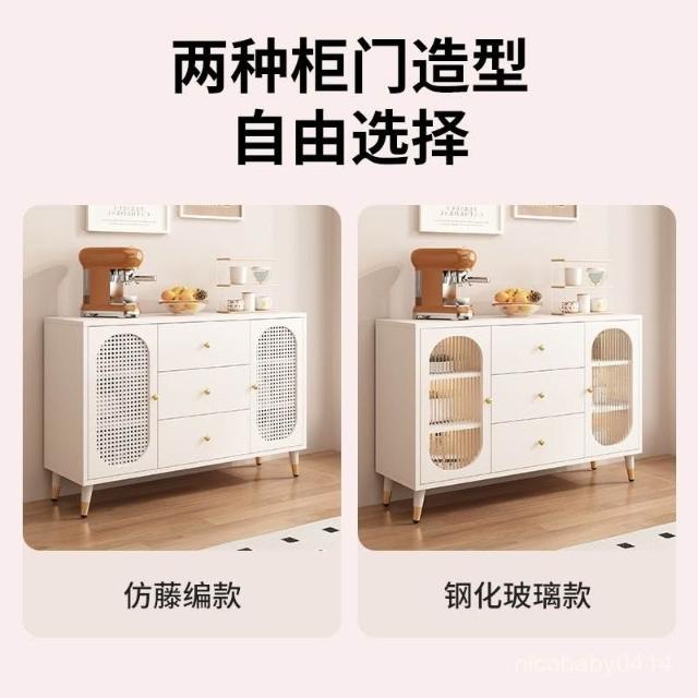 法式奶油風藤編餐邊櫃 一體靠墻家用廚房帶抽儲物櫃 邊櫃 碗櫃 玄關櫃