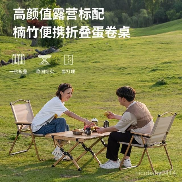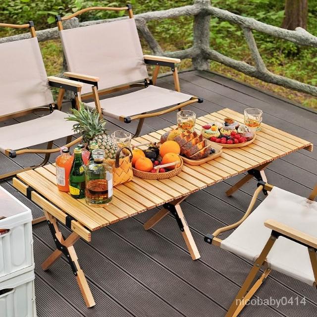 戶外便攜式蛋捲桌 簡易餐桌 露營小型方形桌子 木桌 餐桌 折疊桌