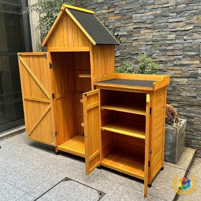 戶外儲物櫃 實木工具箱 田園花園收納櫃 防雨園藝陽臺庭院雜物箱