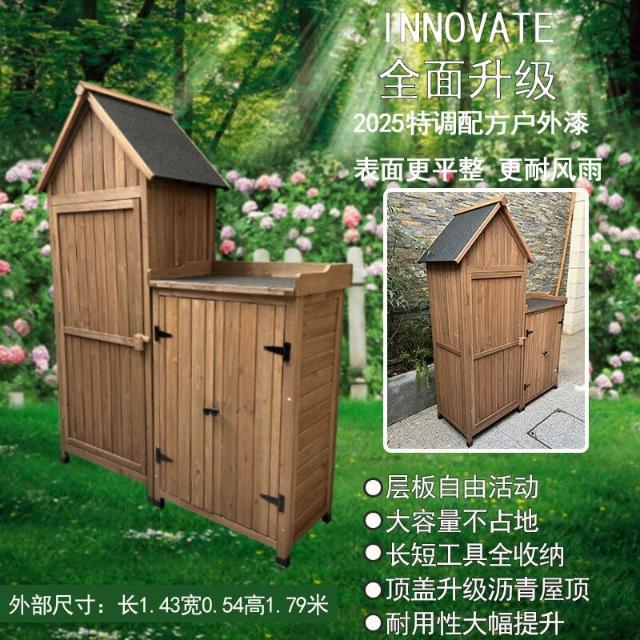 戶外儲物櫃 實木工具箱 田園花園收納櫃 防雨園藝陽臺庭院雜物箱