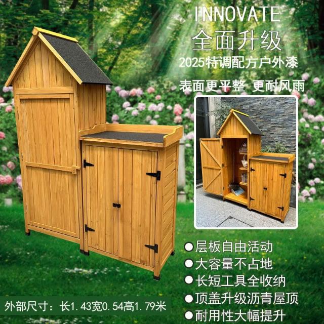戶外儲物櫃 實木工具箱 田園花園收納櫃 防雨園藝陽臺庭院雜物箱