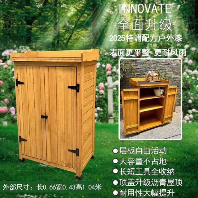 戶外儲物櫃 實木工具箱 田園花園收納櫃 防雨園藝陽臺庭院雜物箱