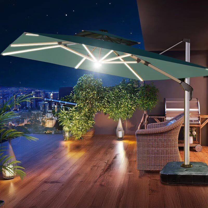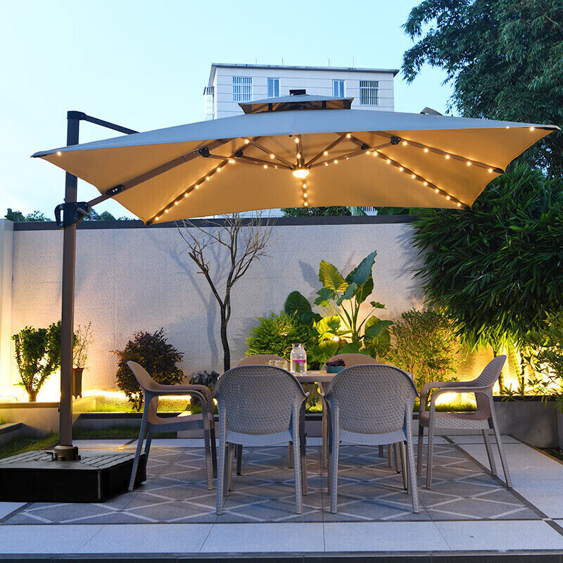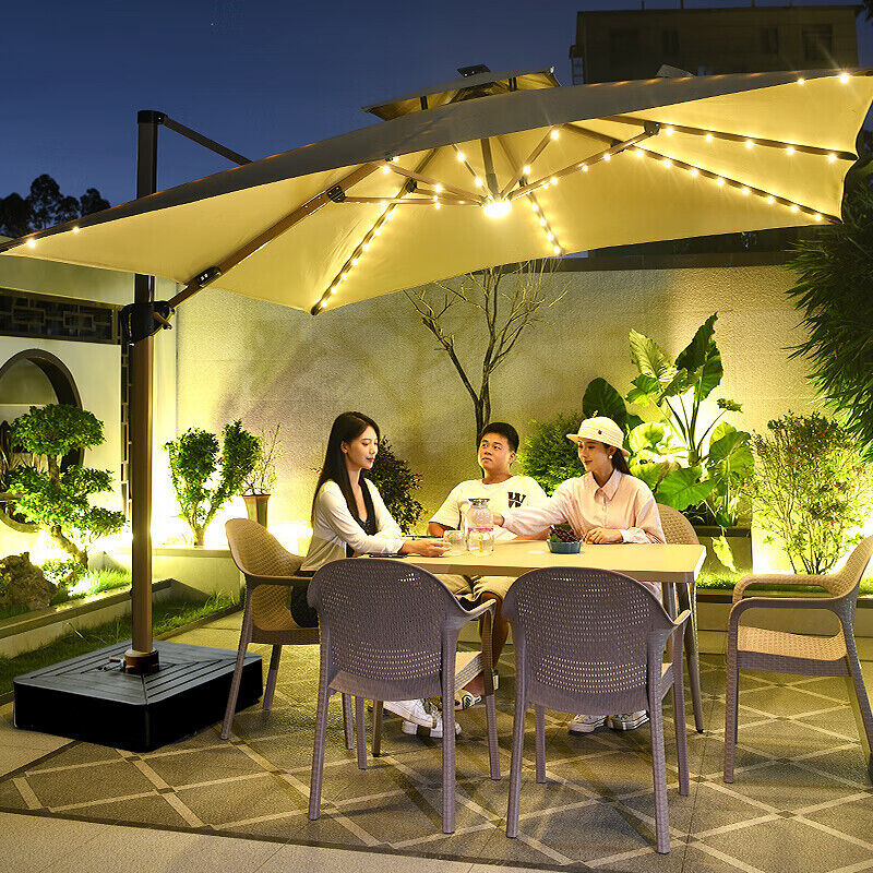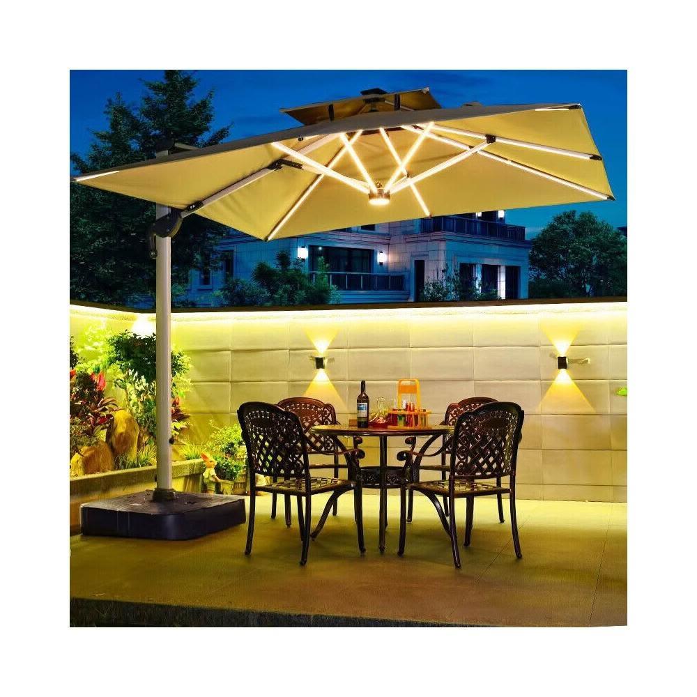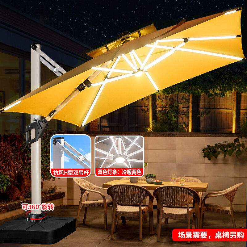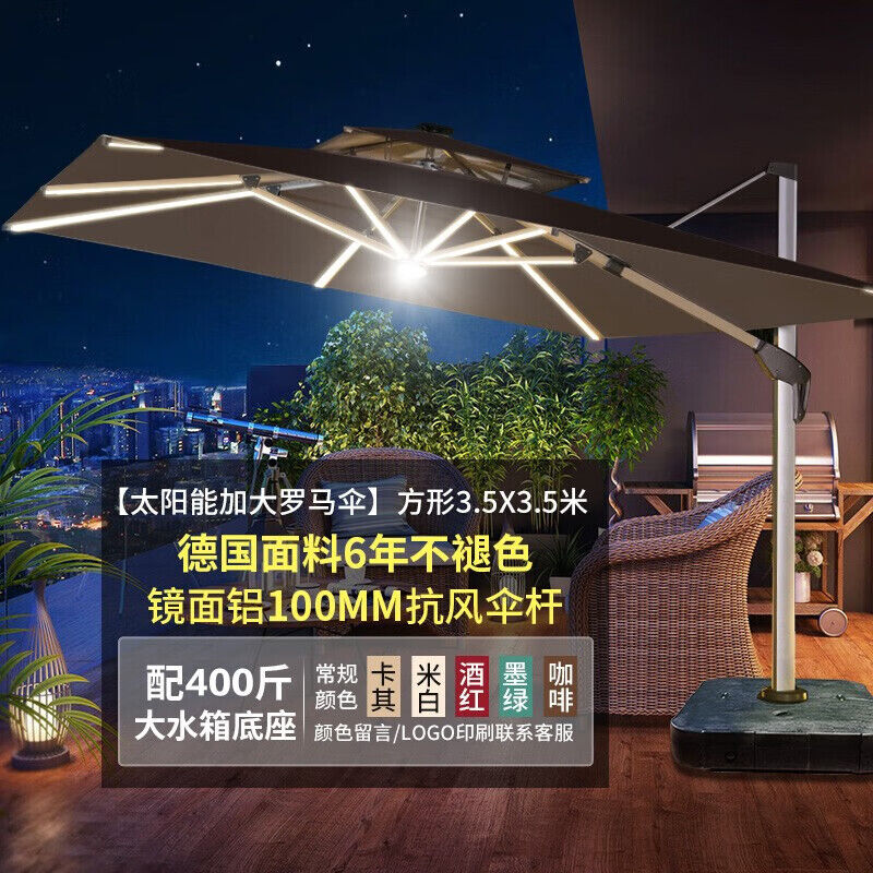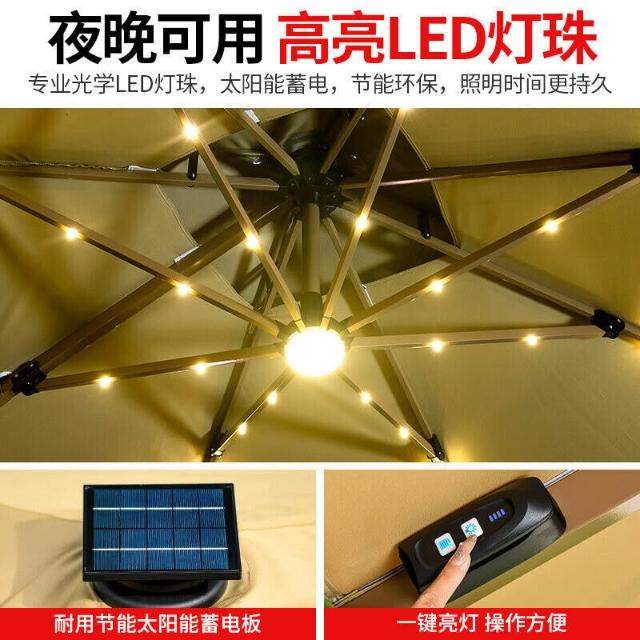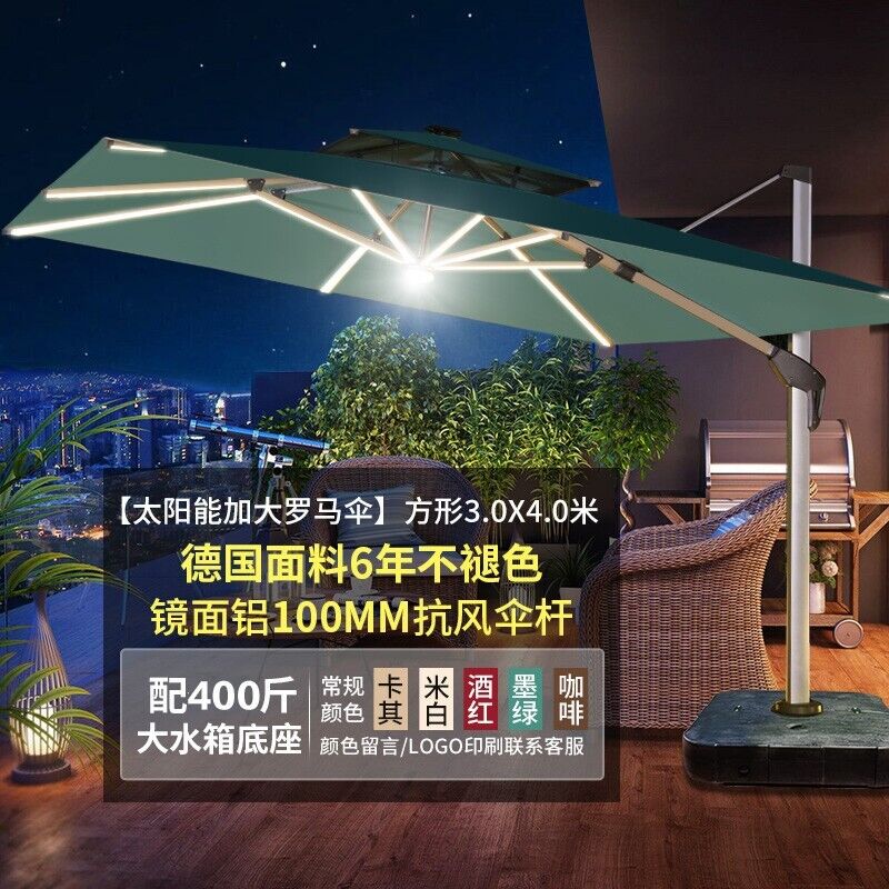 戶外太陽能遮陽傘 庭院花園大型LED燈日夜兩用室外擺攤羅馬傘
