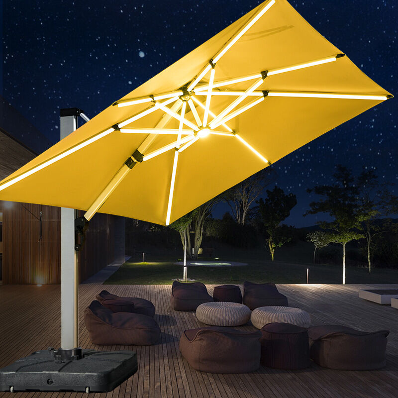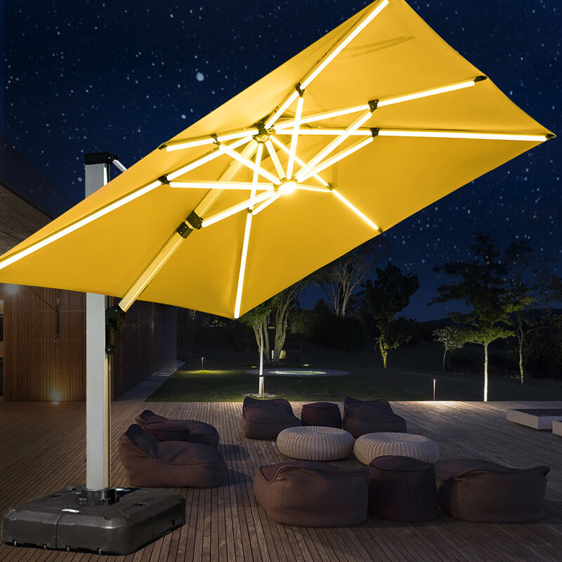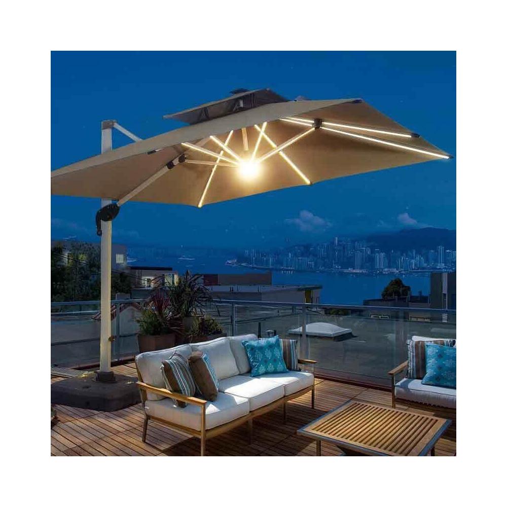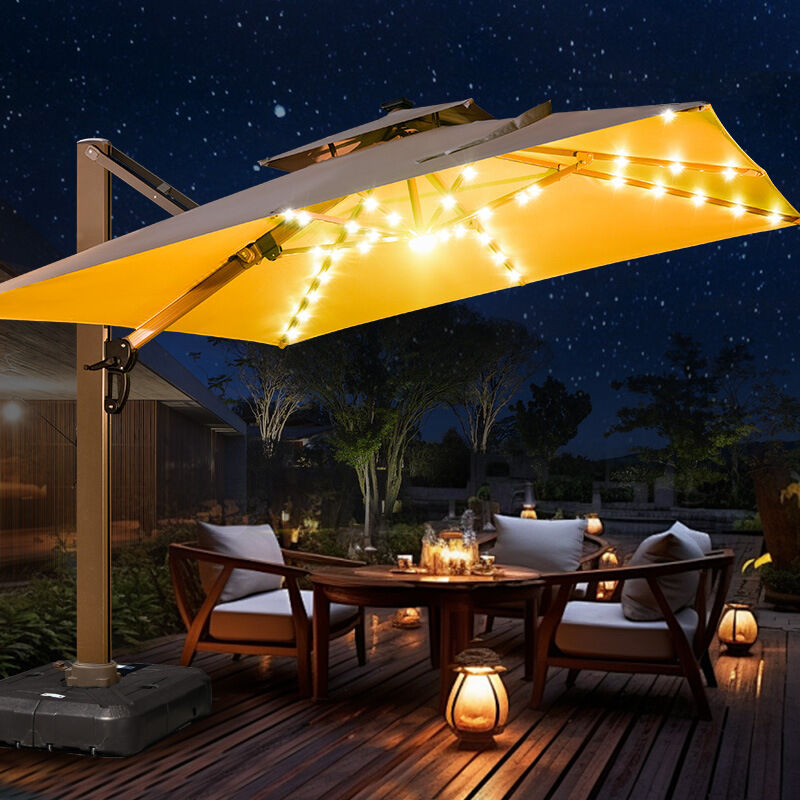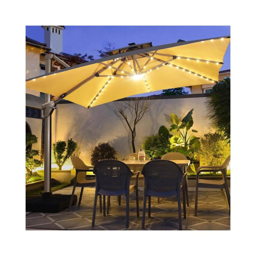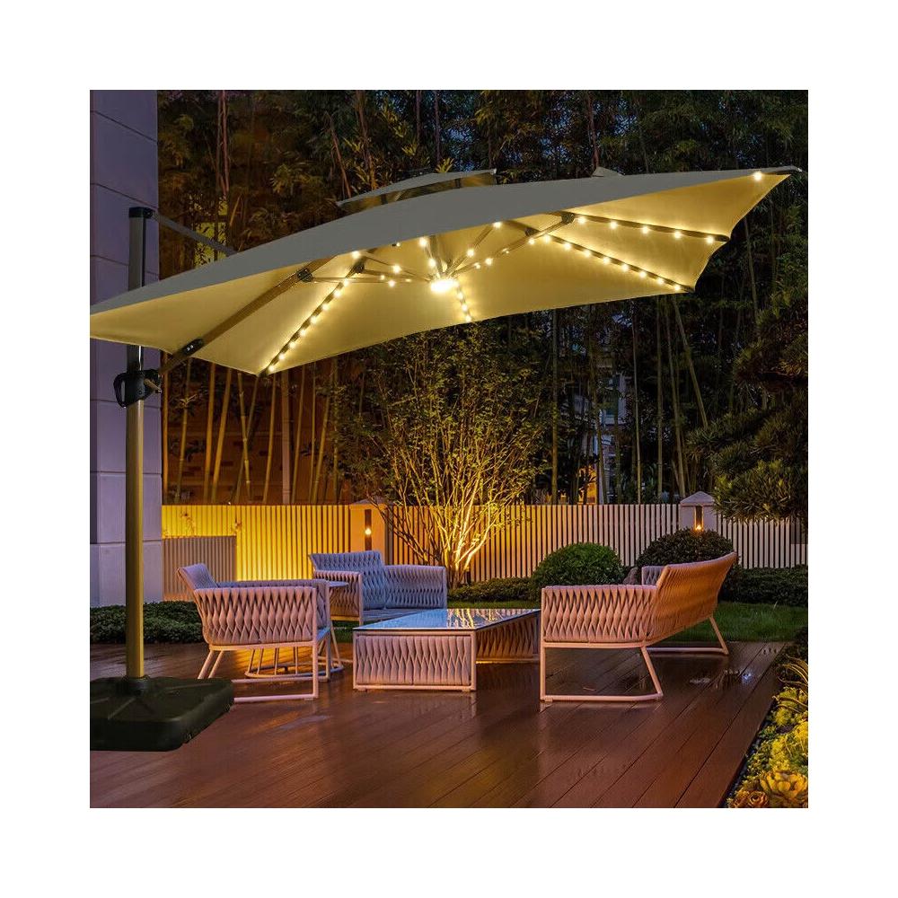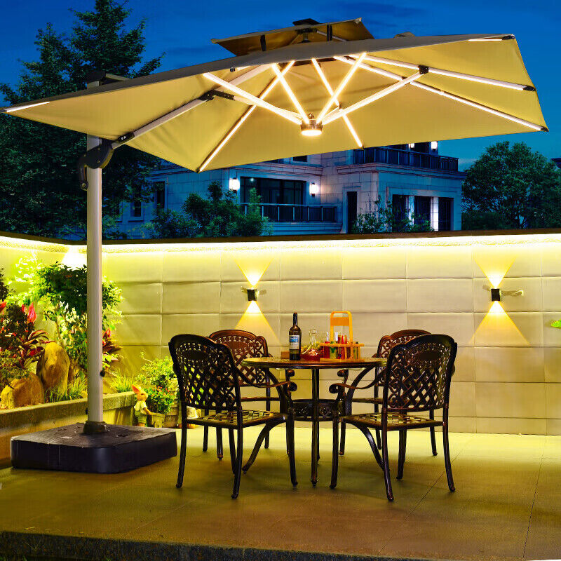 戶外太陽能遮陽傘 庭院花園大型LED燈日夜兩用室外擺攤羅馬傘