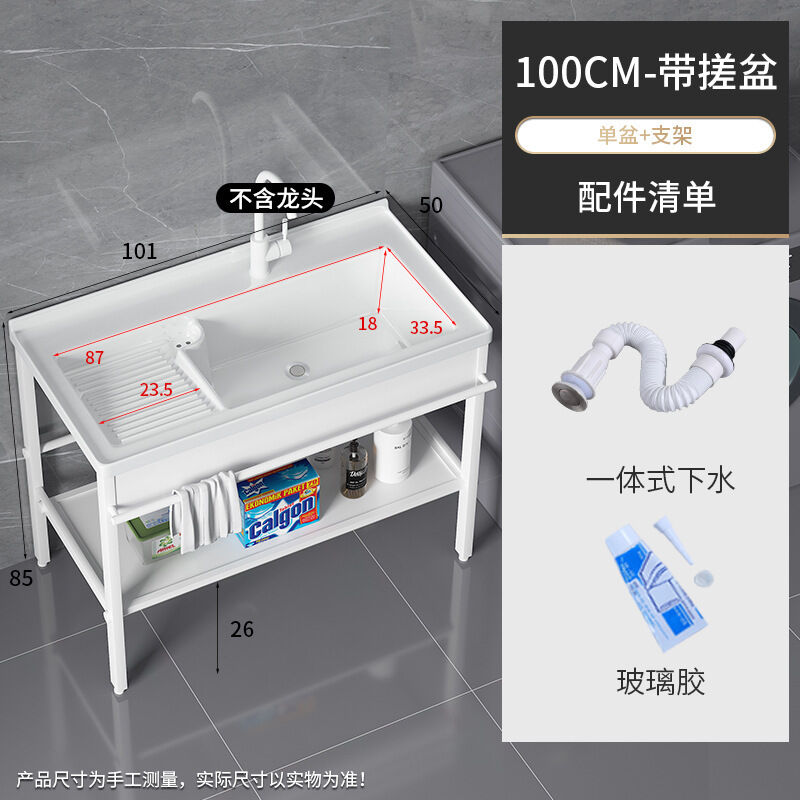 陶瓷洗衣槽 帶搓板 室外落地式不銹鋼支架 洗手盆 陽臺洗衣池 一體臺盆