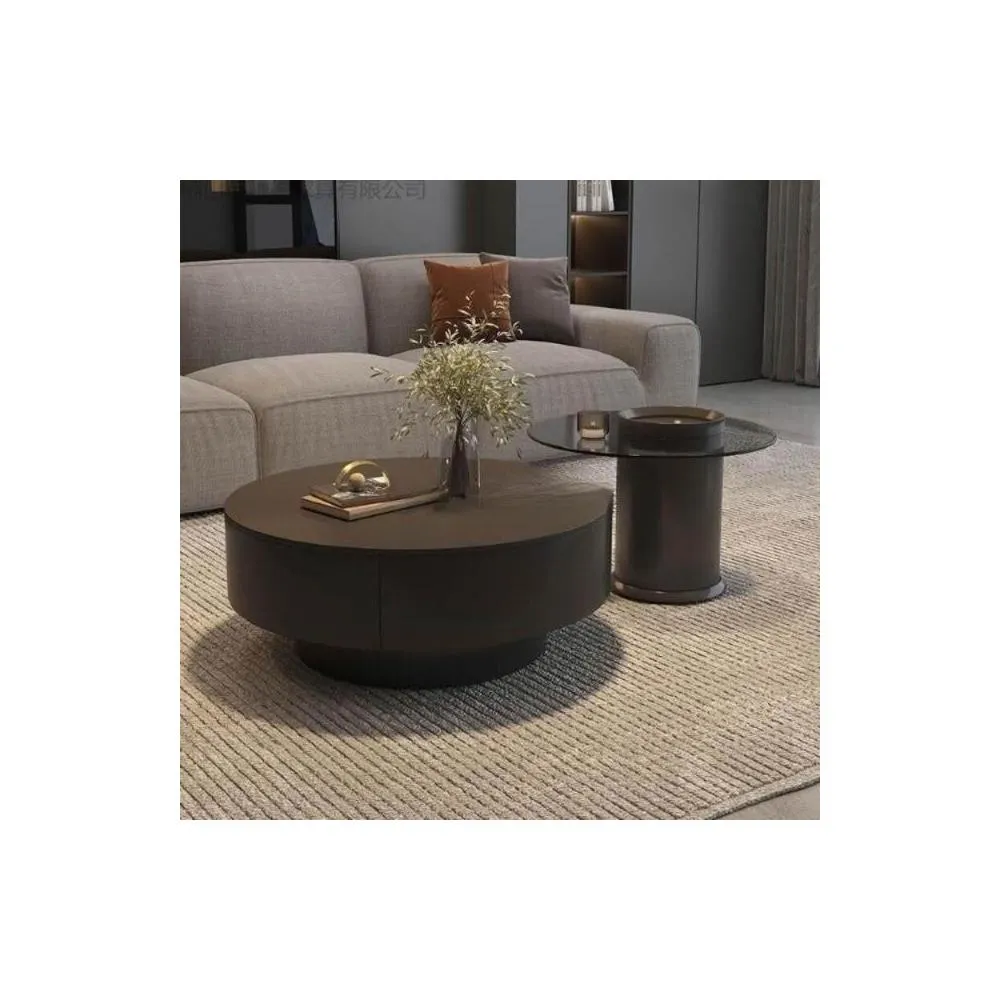 🔥台灣現貨 黑色岩闆意式極簡茶幾 現代簡約客廳家用大小圓形茶桌 高級設計師款