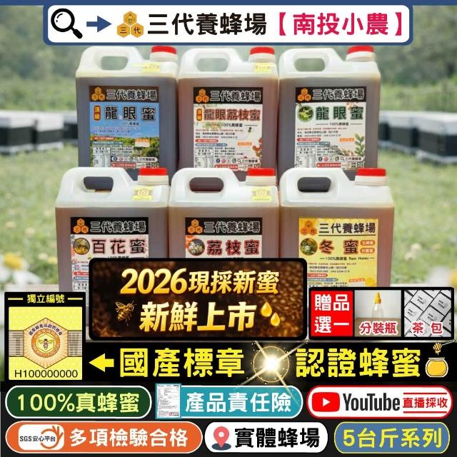 三代養蜂場5台斤100%台灣真蜂蜜│⭐️1桶免運✔國產認證標章✔獨家產品✔真實採收紀錄✔多項檢驗合格✔實體養蜂場│