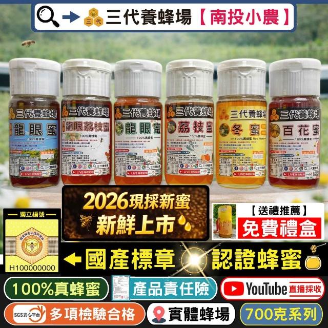 三代養蜂場700克100%台灣真蜂蜜│✔國產認證標章✔獨家產品✔真實採收紀錄✔多項檢驗合格✔實體養蜂場│