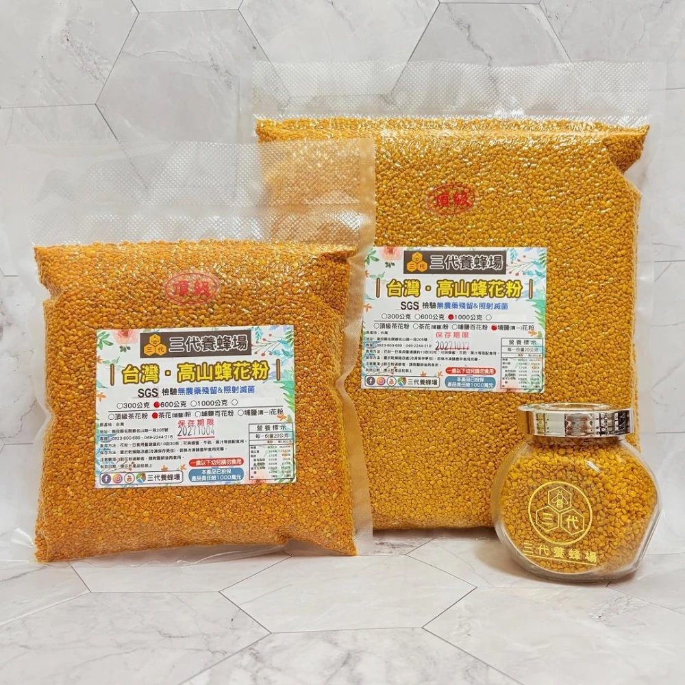 三代養蜂場台灣.頂級埔鹽花粉、頂級茶花粉│600克、1公斤裝│100%台灣花粉│⭐️台灣高山✅檢驗合格✅無農藥殘留│