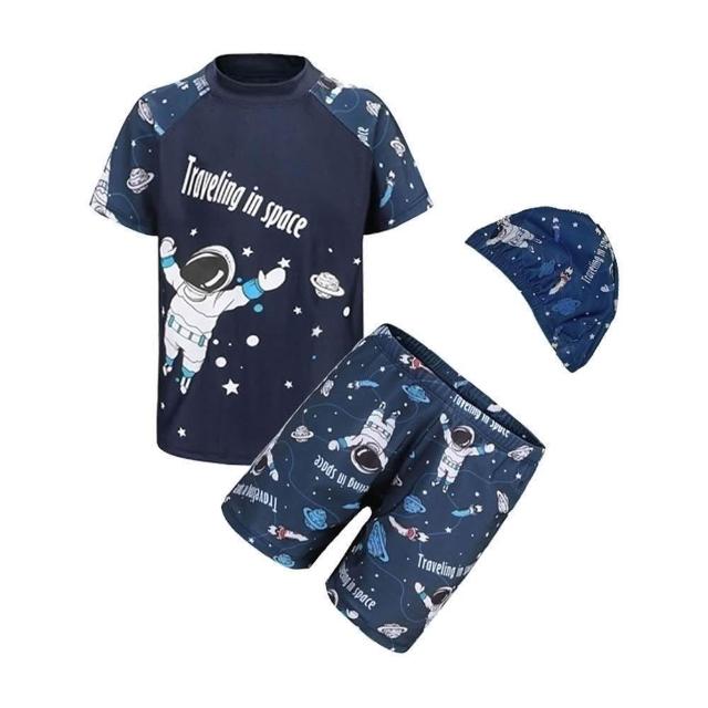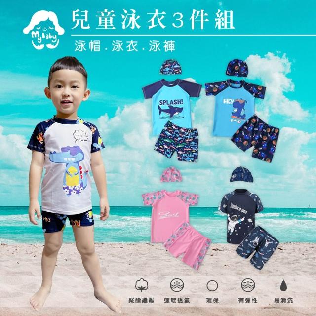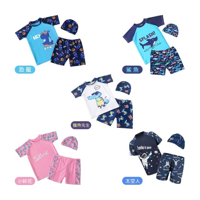 我家寶貝 90-145cm 三件式兒童泳衣套裝 男女童泳裝 高彈透氣 泳衣泳褲永帽 恐龍 鯊魚 碎花
