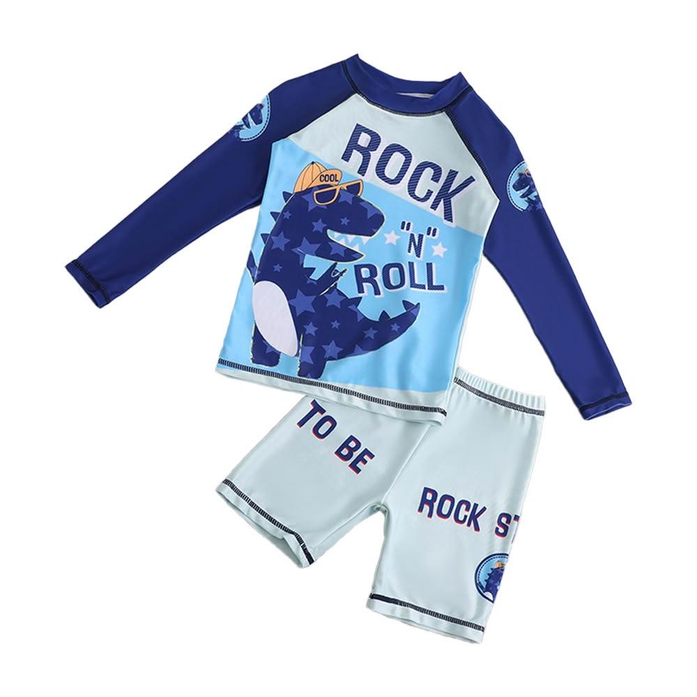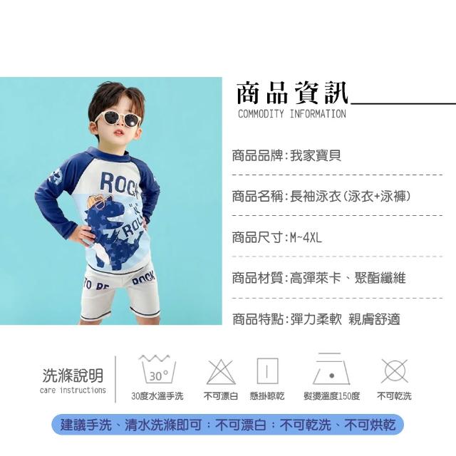 我家寶貝 M-4XL 二件式兒童長袖防曬泳衣套 恐龍 男女童泳裝 高彈透氣 泳衣泳褲