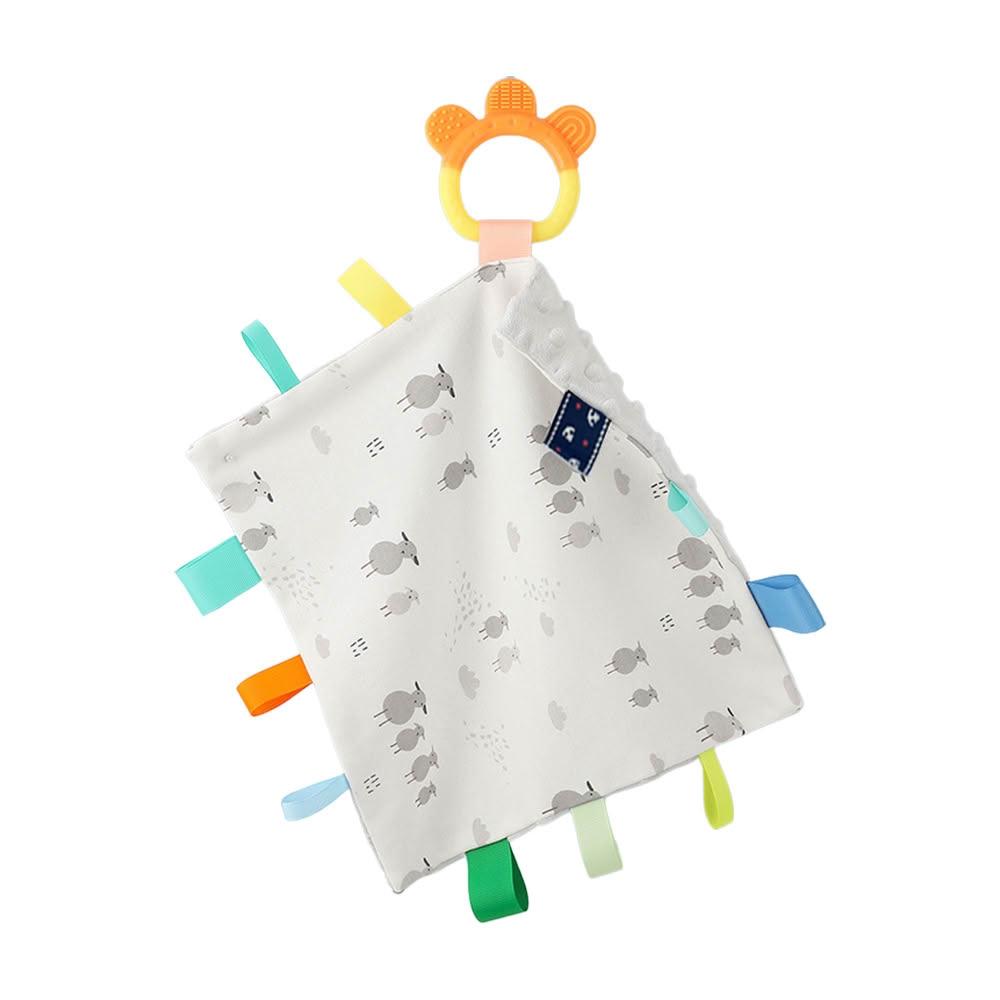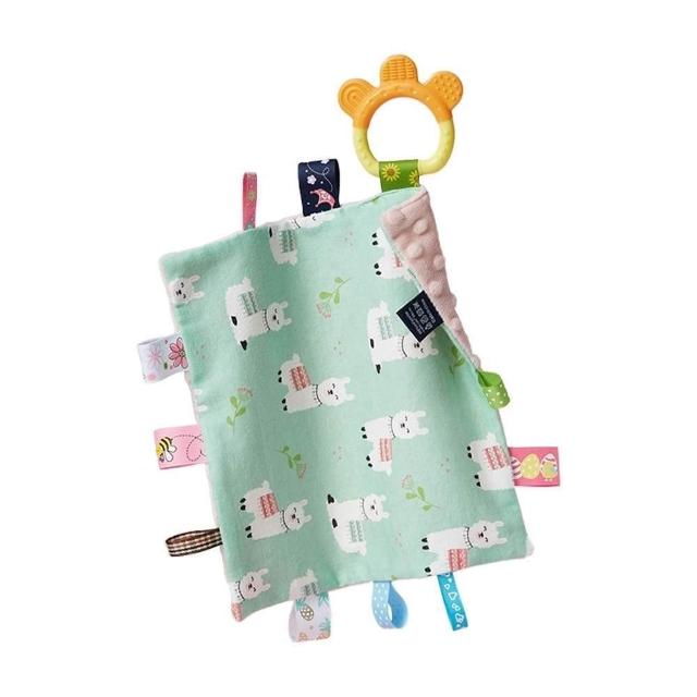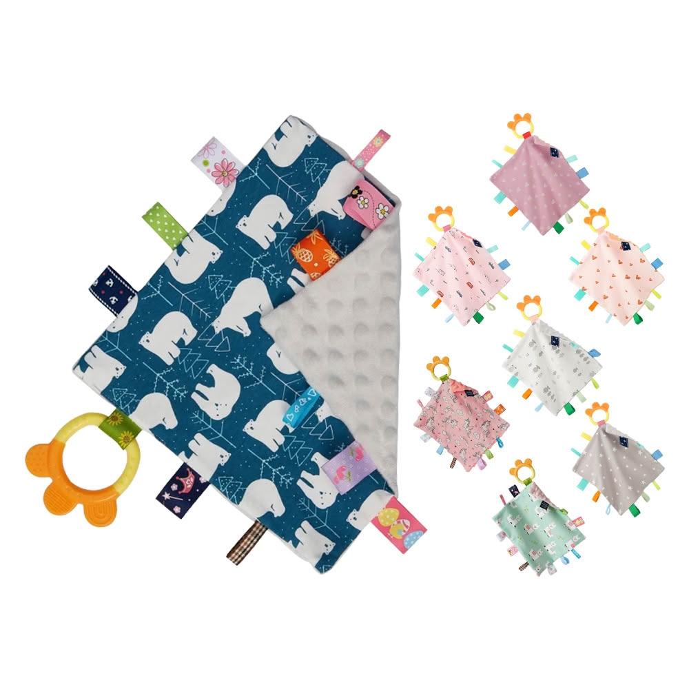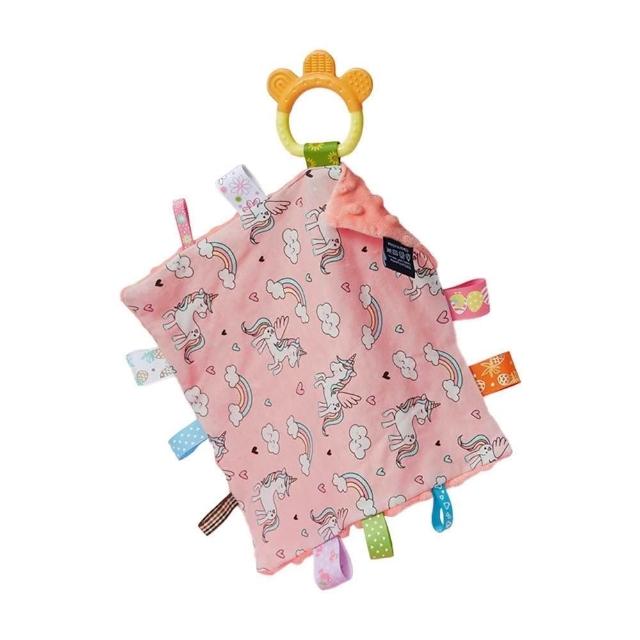 我家寶貝 25*25cm 固齒器 豆豆絨標籤安撫巾 咬咬安撫巾 嬰幼兒純棉小被被 AB雙面料