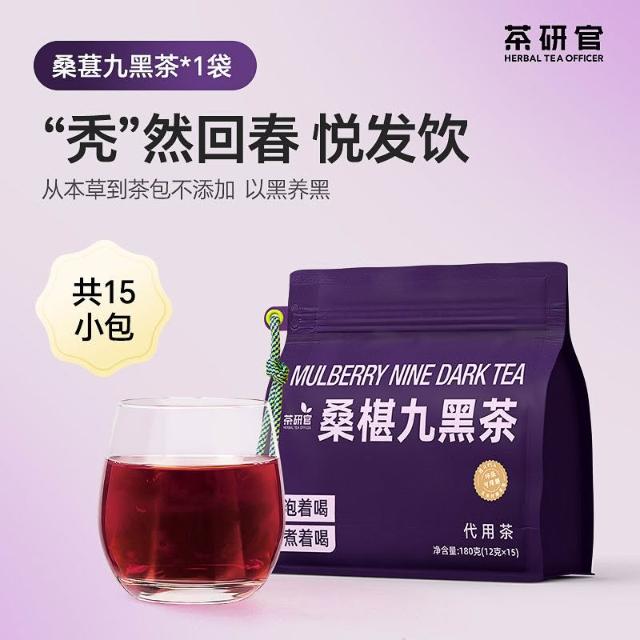 傑傑優選 茶研官桑葚九黑茶黑枸杞桑葚茶黑豆黑米黑芝麻黑加侖五黑茶養生茶中秋節禮品中秋節禮盒