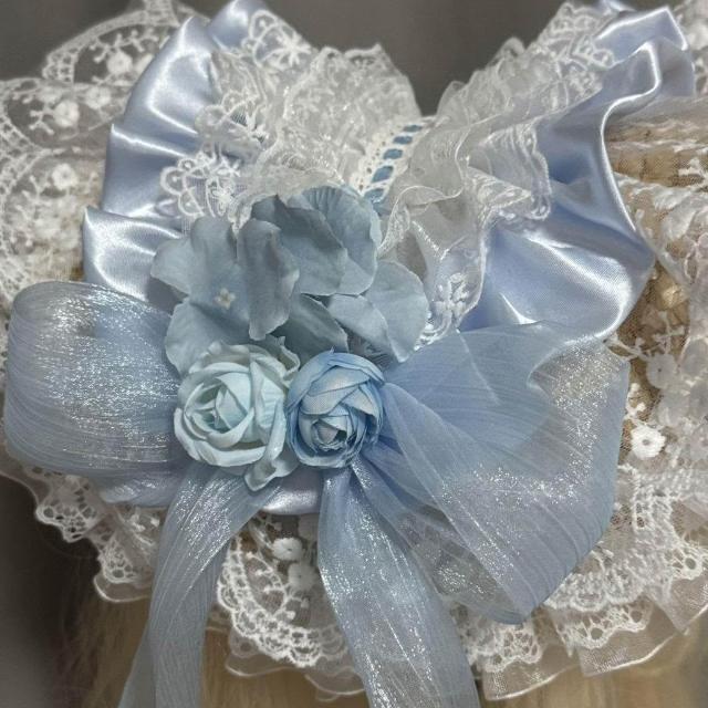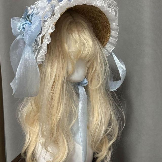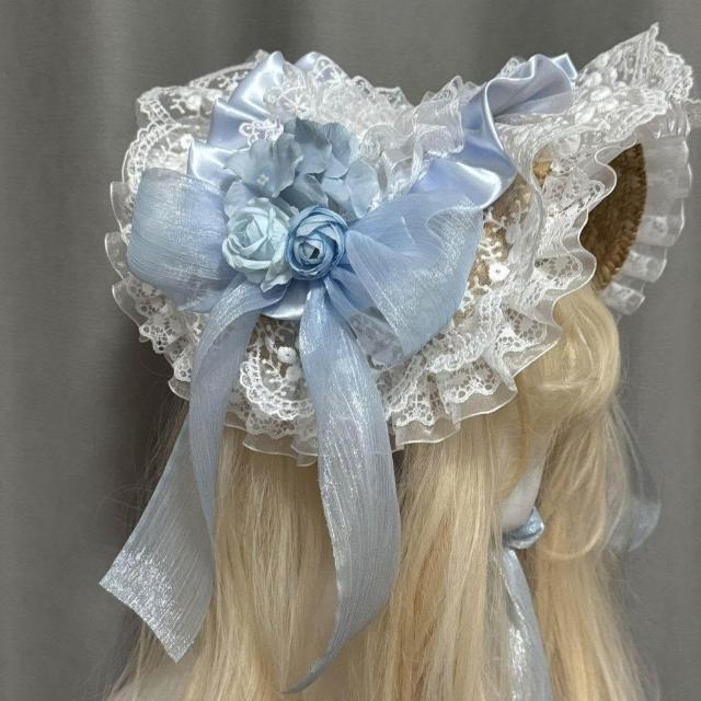 免運+新品推薦【定製】原創華美折中帽子優雅草帽藍蕾絲花朵華麗款Lolita田園風