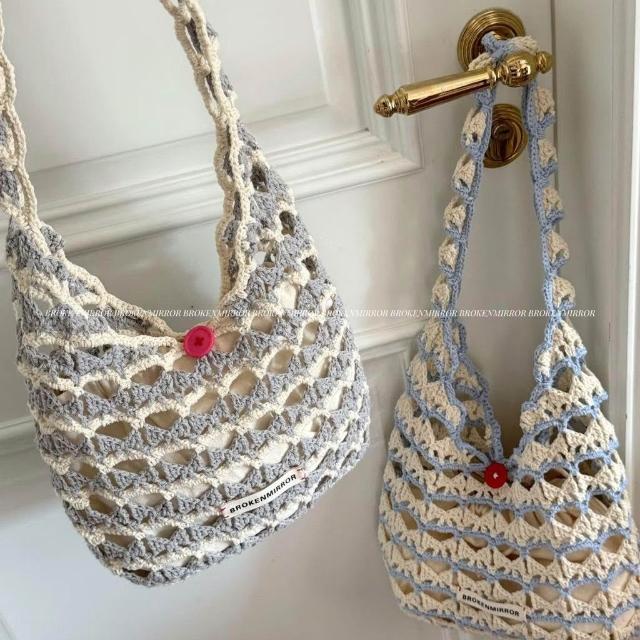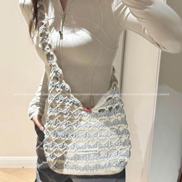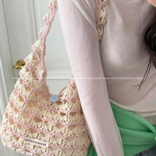 免運+新品推薦重圓•BROKENMIRROR純手工鉤針定製蝴蝶結鏤空托特單肩斜挎包成品