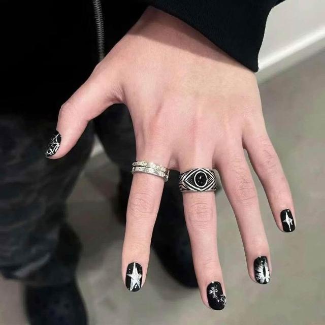 免運+新品推薦甜酷黑色惡魔純手工手工穿戴貓眼短款暗黑之眼高級可拆卸美甲定製