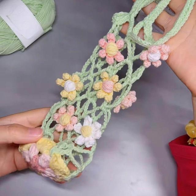 免運+新品推薦diy鉤針毛線編織向日葵鏤空水杯套材料包自制戶外手提杯套送朋友