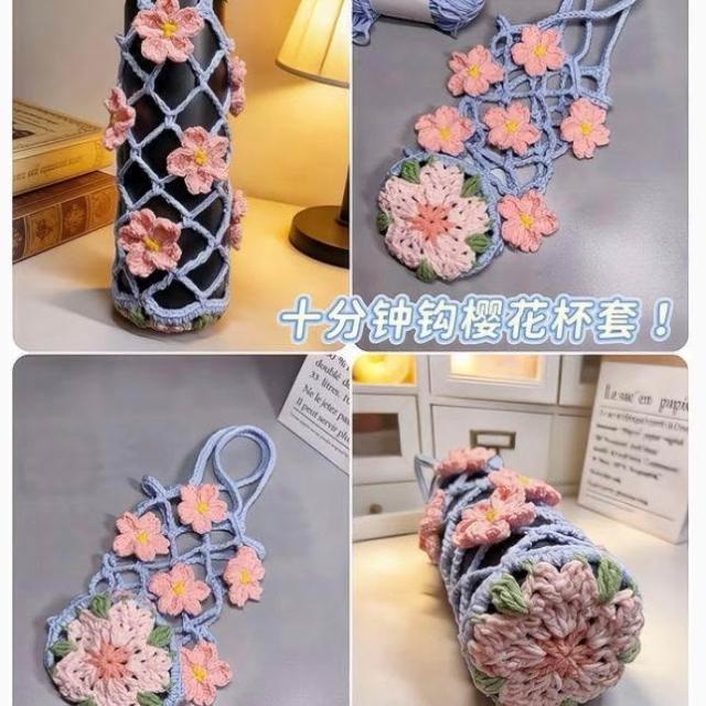 免運+新品推薦diy鉤針毛線編織向日葵鏤空水杯套材料包自制戶外手提杯套送朋友