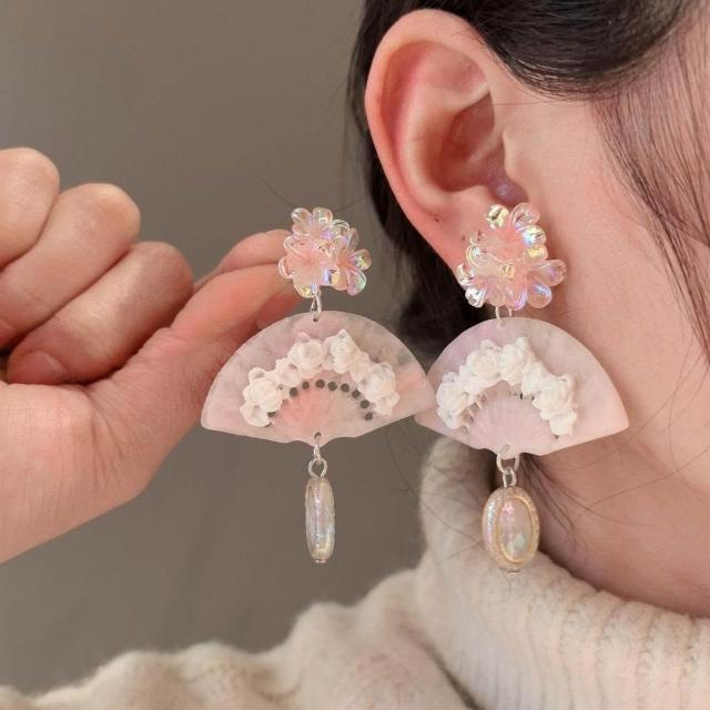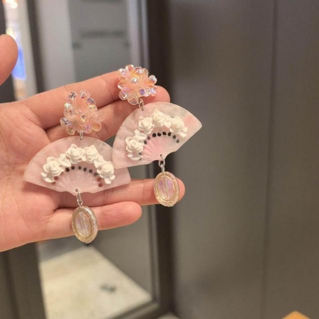 免運+新品推薦新中式扇子耳環2026新品春夏高級感古風漢服旗袍耳飾國風耳夾