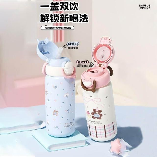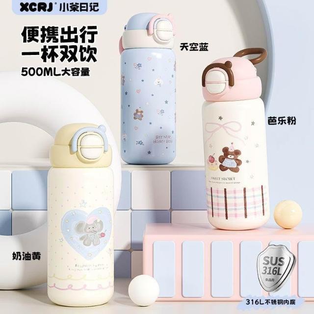 免運+新品推薦【小茶日記】316不鏽鋼高顏值兒童保溫杯食品級雙飲卡通母嬰吸管水杯