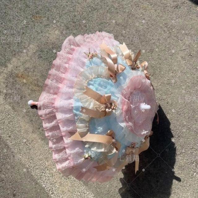 免運+新品推薦Lolita重工蕾絲蝴蝶結傘 成品 搭小熊桶子 可接定製