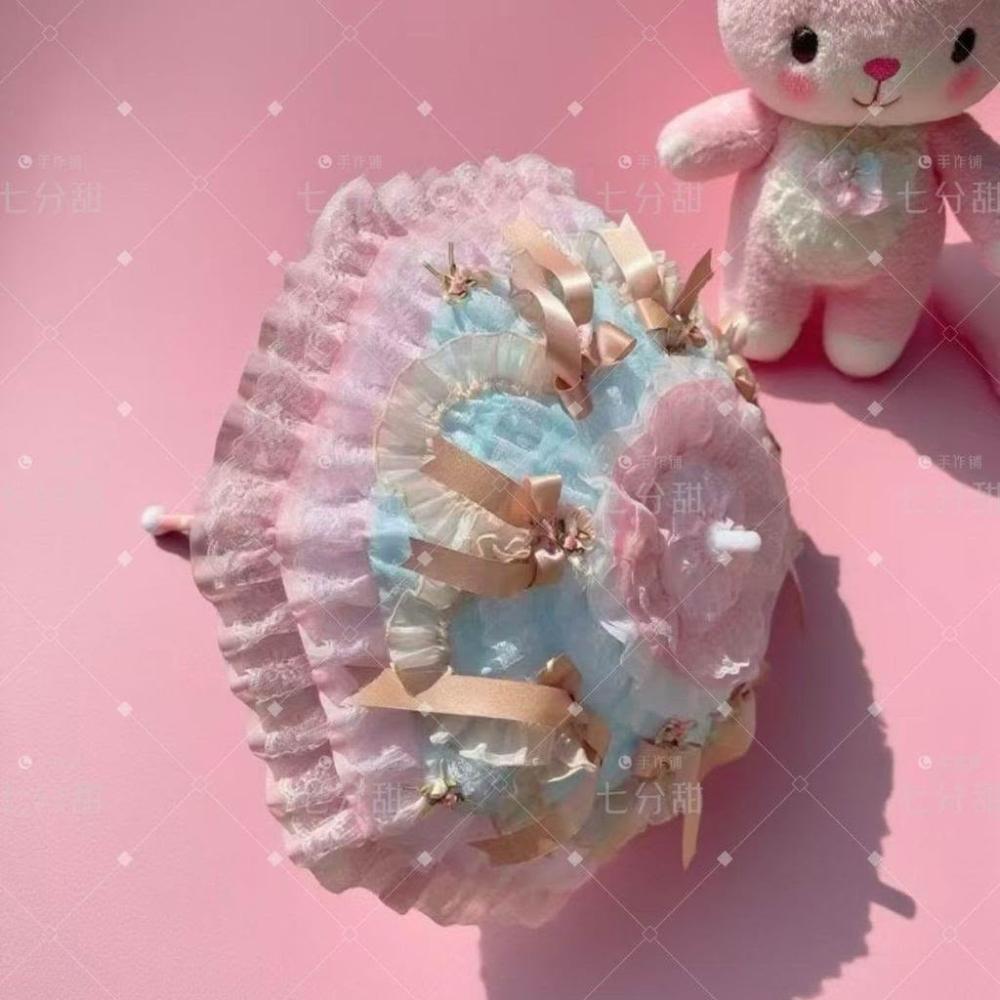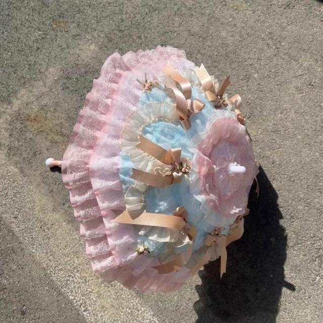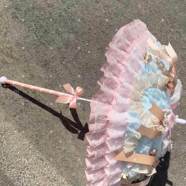 免運+新品推薦Lolita重工蕾絲蝴蝶結傘 成品 搭小熊桶子 可接定製