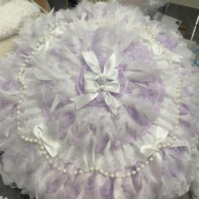 免運+新品推薦lolita手作洛麗塔珍珠蝴蝶結花邊羽毛百搭lo傘成品 可定製