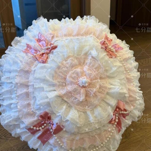 免運+新品推薦Lolita洋傘拍照道具小蛋糕珍珠鏈條華麗重工百搭lo傘 成品 可定製