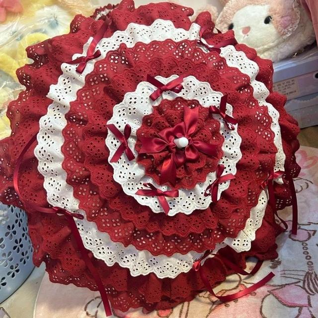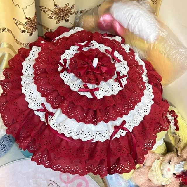 免運+新品推薦手作Lolita紅色花邊蝴蝶結lo傘洛麗塔拍照道具成品 可定製