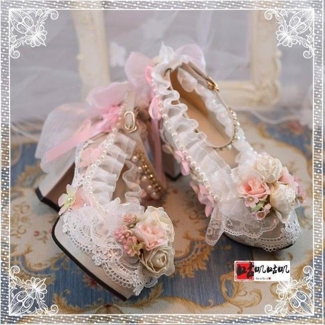 免運+新品推薦原創定製lolita花嫁鞋洛麗塔手作lo鞋仿真玫瑰花蕾絲粗跟高跟鞋子