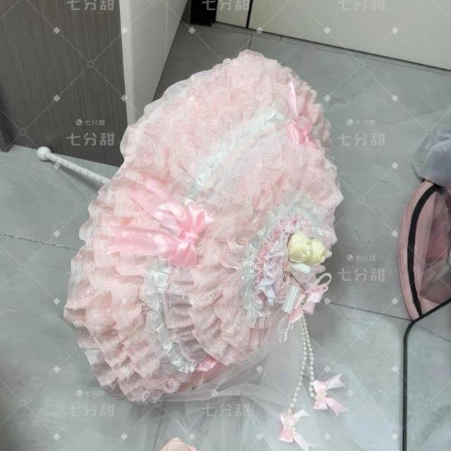免運+新品推薦Lolita拍照道具小蛋糕珍珠鏈條華麗重工花嫁lo傘 成品 可定製