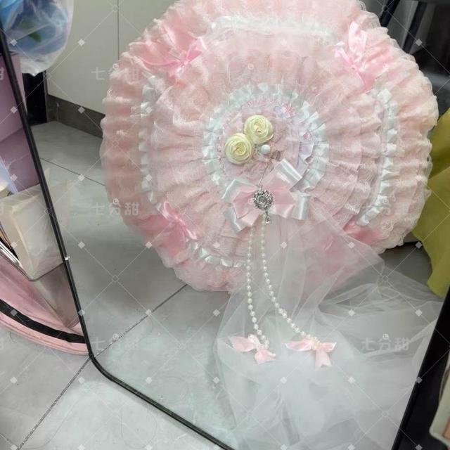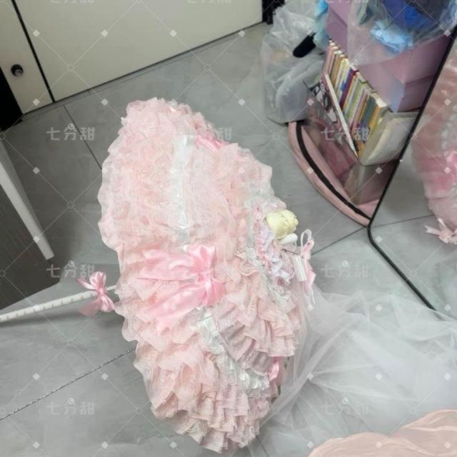 免運+新品推薦Lolita拍照道具小蛋糕珍珠鏈條華麗重工花嫁lo傘 成品 可定製