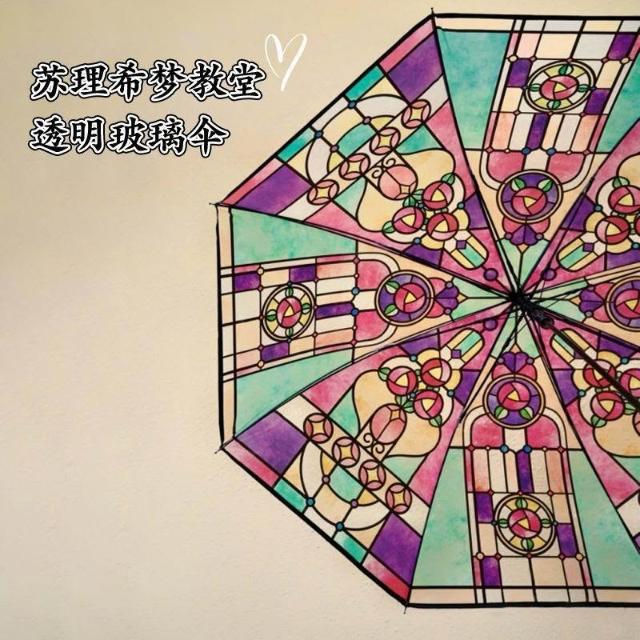 免運+新品推薦定製logo廣告雨傘女網紅教堂拍照浪漫復古彩繪玻璃自動透明玻璃傘
