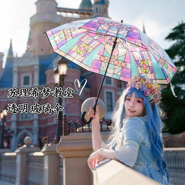 免運+新品推薦定製logo廣告雨傘女網紅教堂拍照浪漫復古彩繪玻璃自動透明玻璃傘