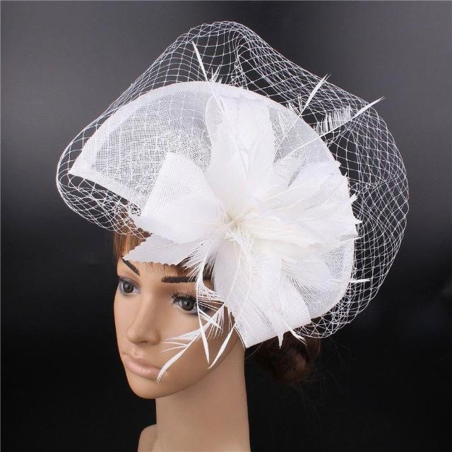 免運+新品推薦復古羽毛誇張大禮帽 仿麻帽子演出走秀禮帽 賽馬會花朵頭飾可定製