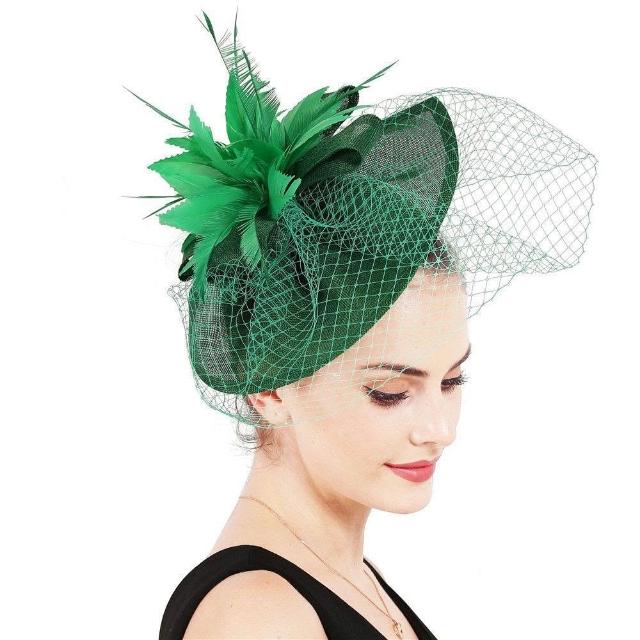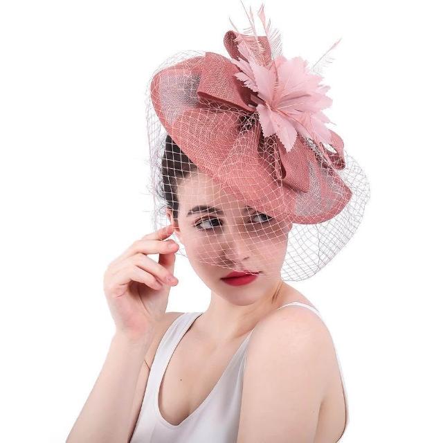 免運+新品推薦復古羽毛誇張大禮帽 仿麻帽子演出走秀禮帽 賽馬會花朵頭飾可定製