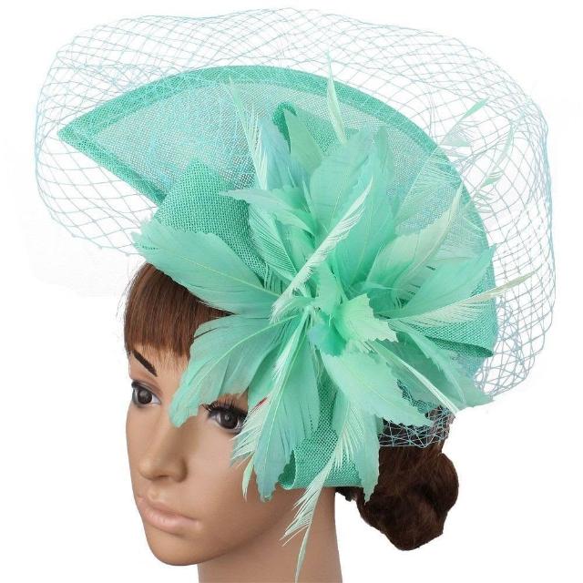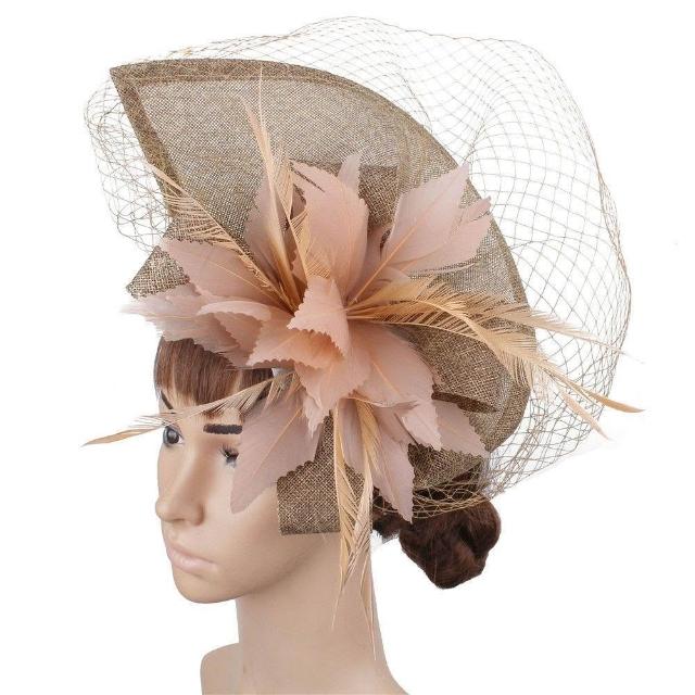 免運+新品推薦復古羽毛誇張大禮帽 仿麻帽子演出走秀禮帽 賽馬會花朵頭飾可定製
