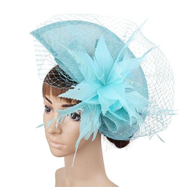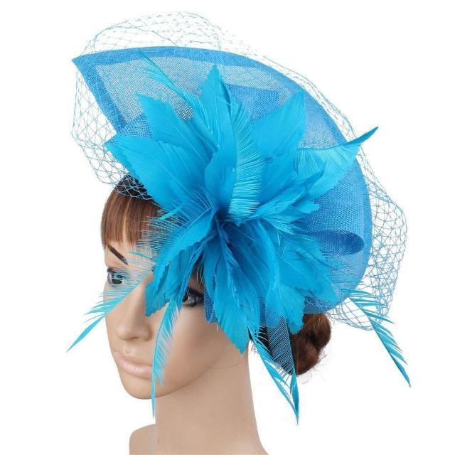 免運+新品推薦復古羽毛誇張大禮帽 仿麻帽子演出走秀禮帽 賽馬會花朵頭飾可定製