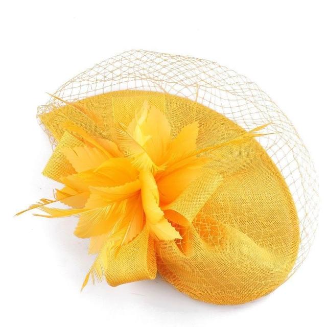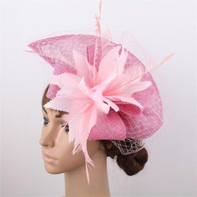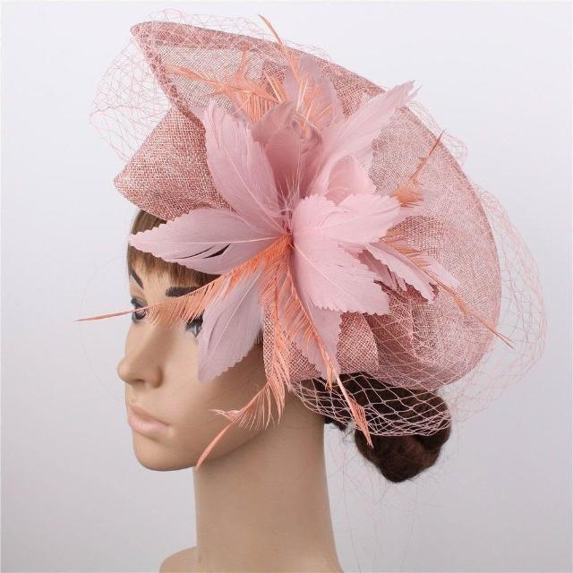 免運+新品推薦復古羽毛誇張大禮帽 仿麻帽子演出走秀禮帽 賽馬會花朵頭飾可定製